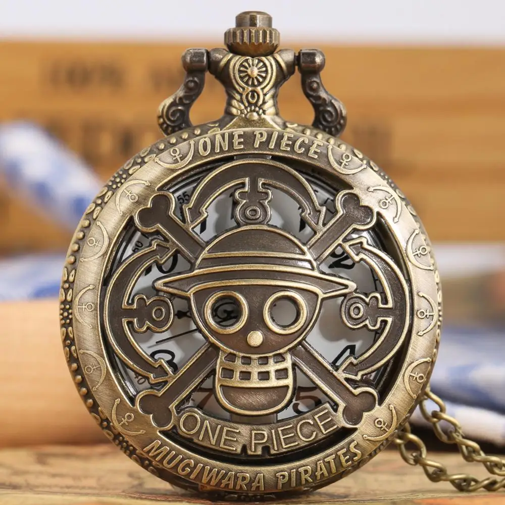 Часы в стиле Харадзюку, кварцевые карманные часы из бронзовой и медной стали с узором в виде черепа для мужчин и женщин, подарок для детей, ожерелье в стиле ретро