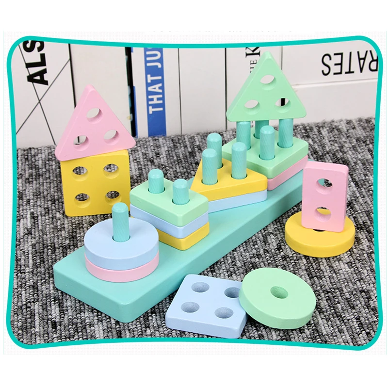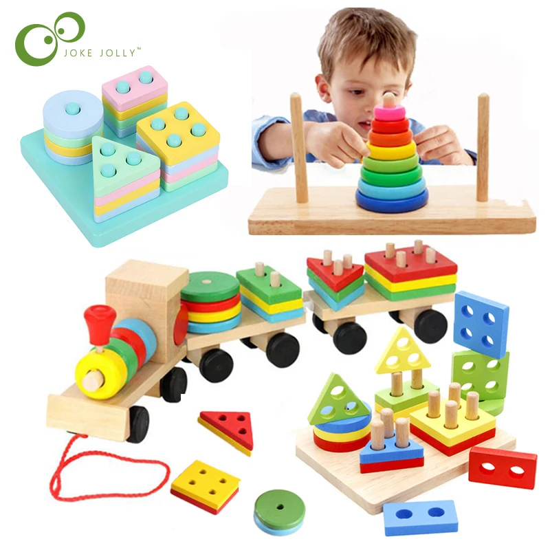 Детские игрушки, цветная деревянная Геометрическая сортировочная доска, складная башня Монтессори, Детская развивающая игрушка, строительный пазл, детский подарок ZXH