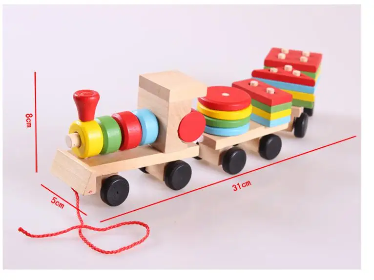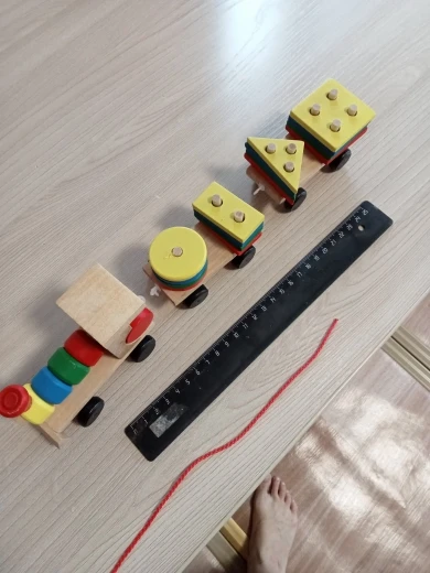 Качество на тройку, дерево плохо обработано есть заусенцы,краска нанесена один раз из-за чего поверхность деталей шершавая, везде виден клей. Сломано одно кольцо для соединения состава, второе согнуто. Упаковка была в плотную пупырку,так что вина точно не транспортной компании.Верёвочка оторвалась уже в первый день. Впечатление что игрушку сделал ученик 7ого класса на уроке труда,так что цена явно завышена. Единственный плюс, ребёнку понравилось, малышке два года.