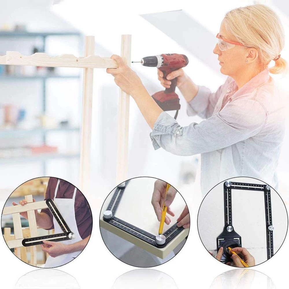Многоугловая измерительная линейка, транспортиры, регулируемая линейка 6 раз, локатор отверстий для керамической плитки, стекло, деревообработка, Универсальный дырокол