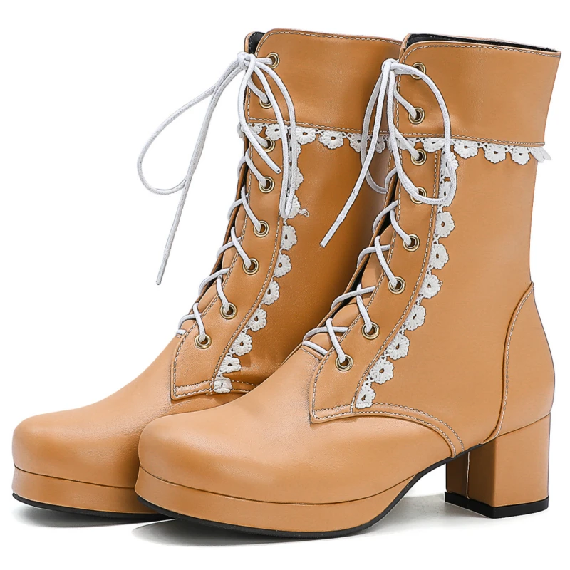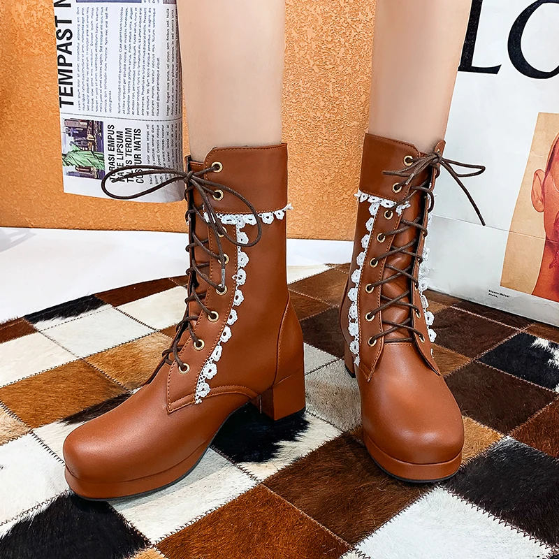 Модные ботильоны; Женская Весенняя обувь на платформе; Красивая Женская обувь в стиле Лолиты фиолетового, розового, белого цветов; Ботинки для девочек; Большой размер 48