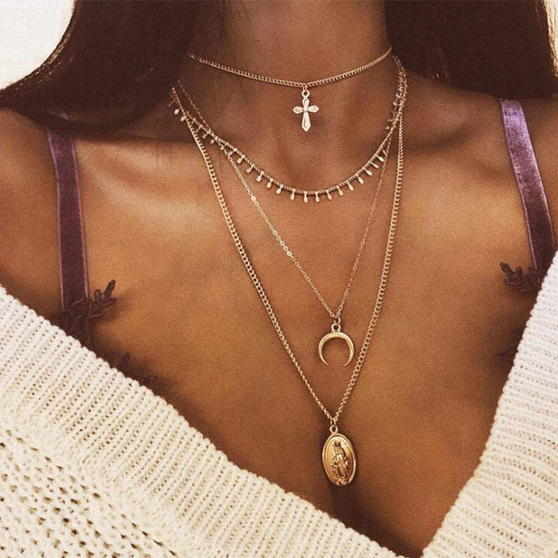 Богемное ожерелье с крестом для женщин и мужчин, многослойная подвеска, винтажное золотое ожерелье, портрет, модные новые украшения 2020