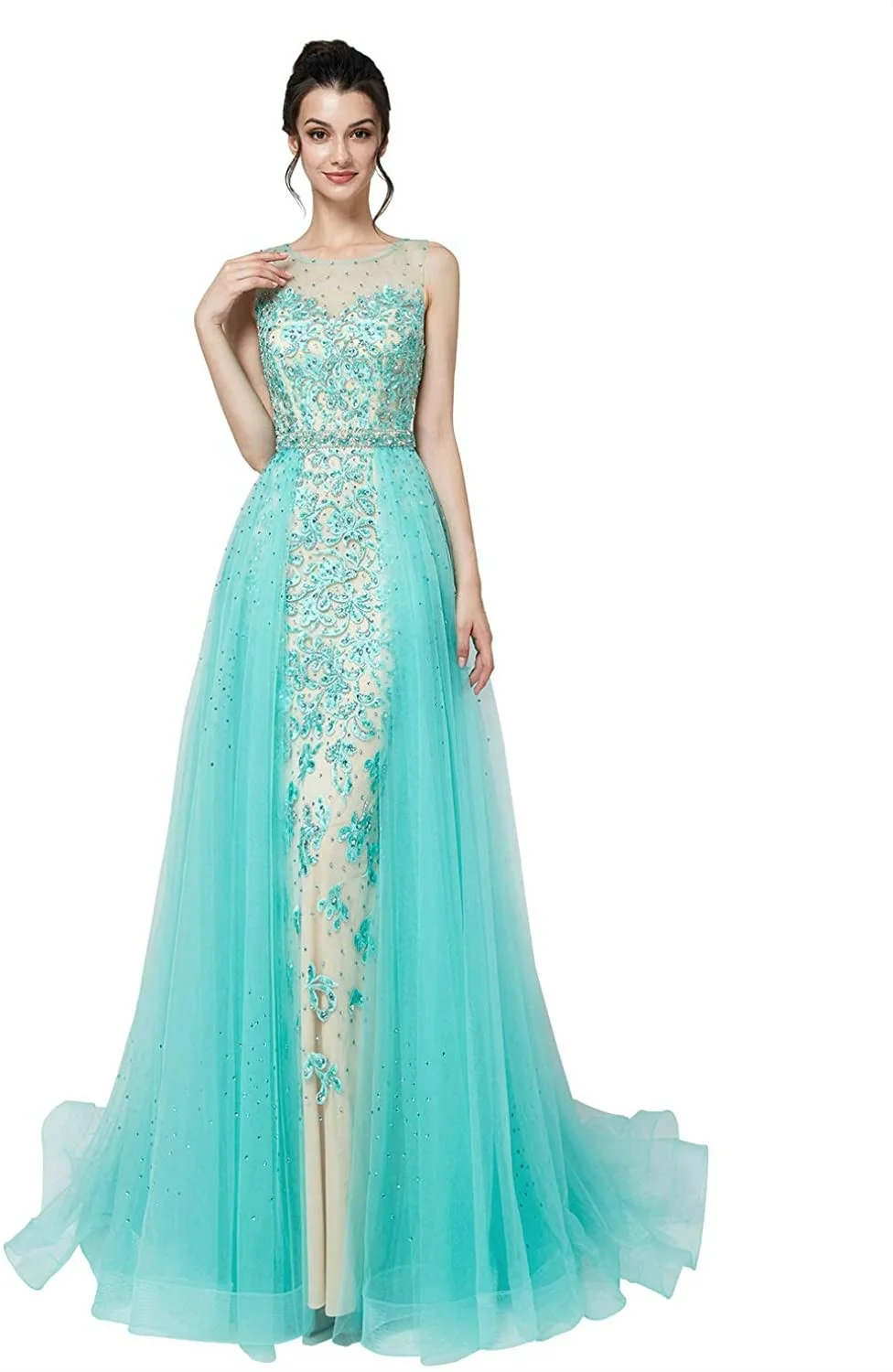 Длинные вечерние платья с иллюзионным вырезом бирюзовое кружево со съемной юбкой вечернее платье для выпускного вечера в арабском стиле Vestidos Robe De Soiree Fiesta