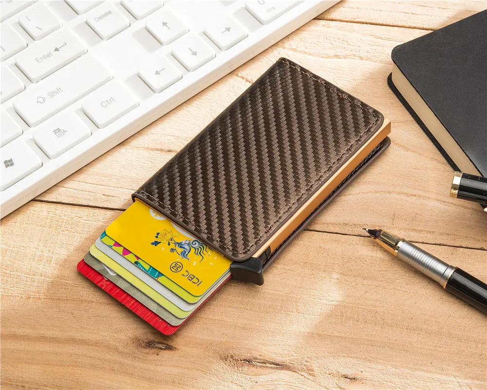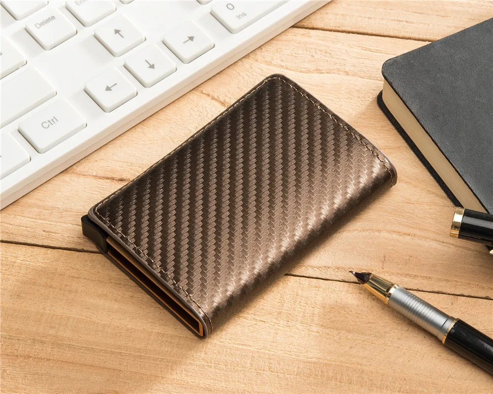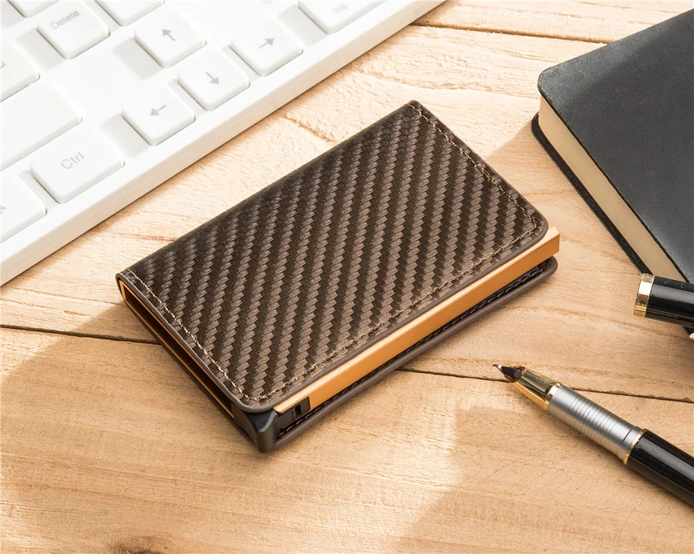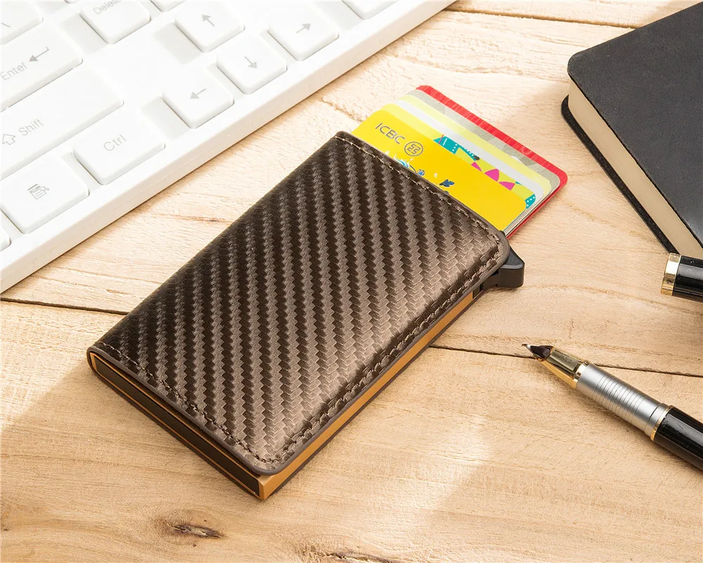 Bycobecy углеродного волокна протектор кредитной держатель для карт Tarjetero Hombre RFID из искусственной кожи в штучной упаковке бумажник тонкое, размером с карту чехол 2021 Новый