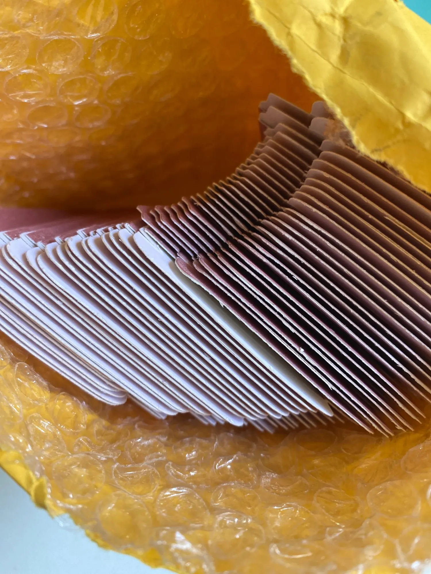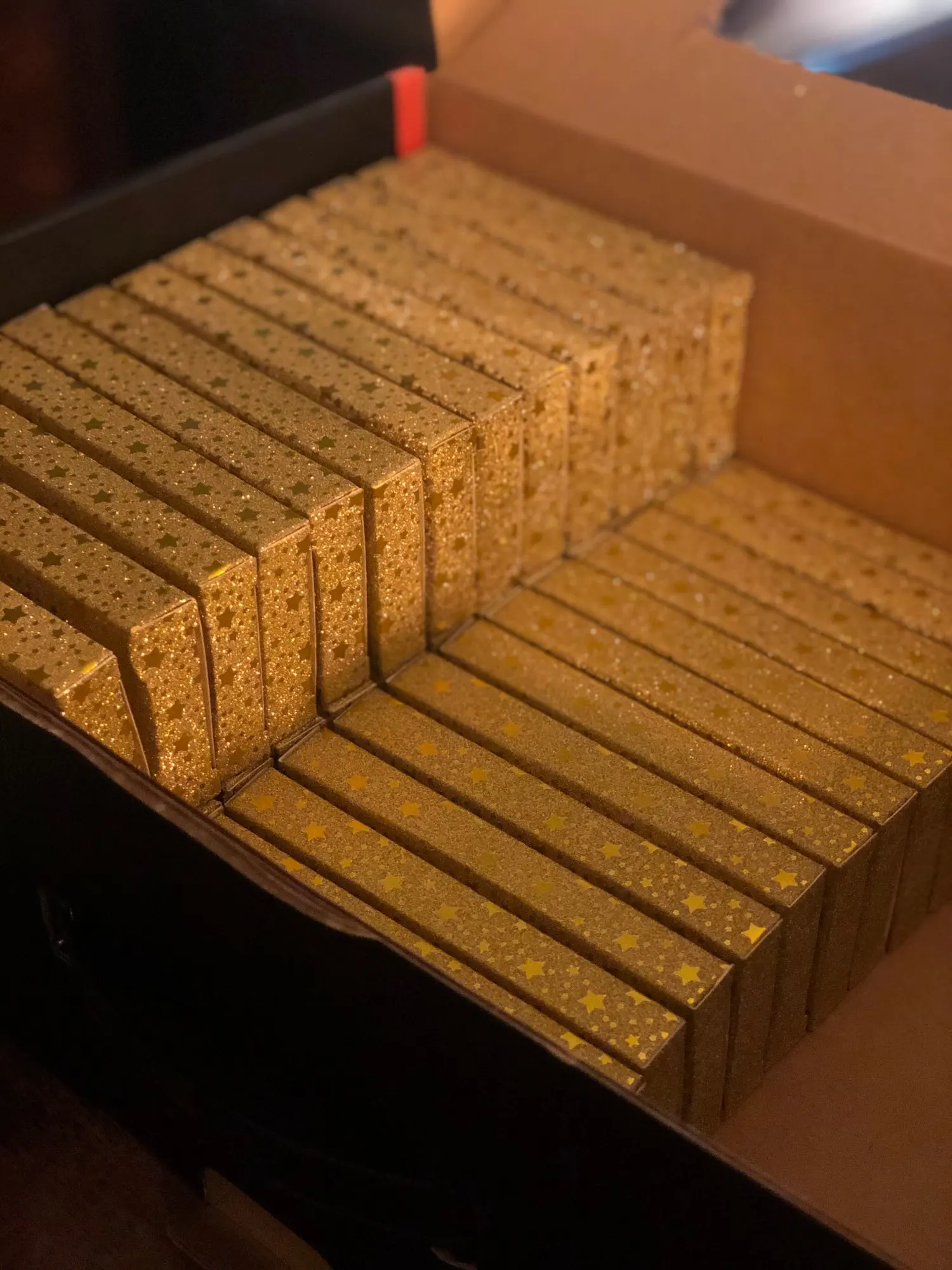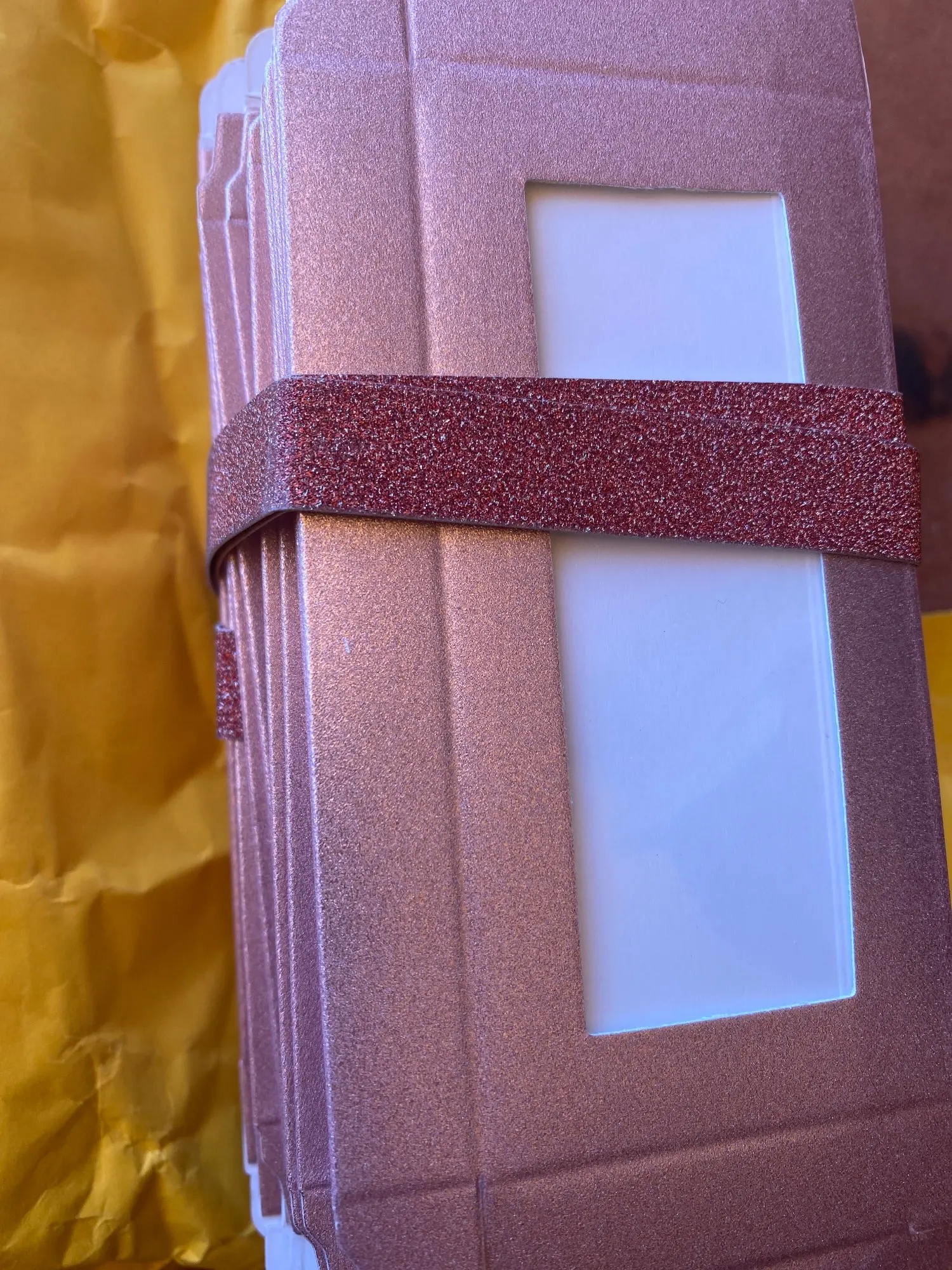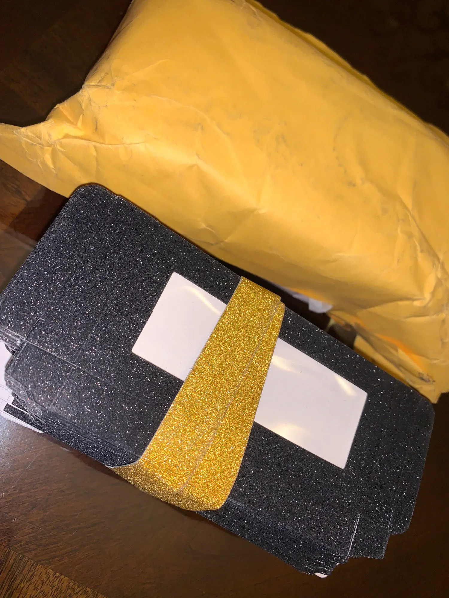 У меня действительно нет жалоб на это, потому что они идеально соответствуют описанию. Когда я их натираю, ни один блеск не выпадает, коробка не очень дешевая, и они очень доступны! Я получил 50 коробок с золотыми блестками за $10,82 и бесплатную доставку в США. Это заняло около 2-3 недель, и я начала волноваться из-за того, что моя доставка не обновлялась. Но в противном случае отличный товар и настоятельно рекомендуем вам заказать. Моя фотография прилагается к этому отзыву, это изображение их рядом с пузырчатыми почтальонами. Я был слишком ленив, чтобы вставать, но вы все получите Вист! LOL