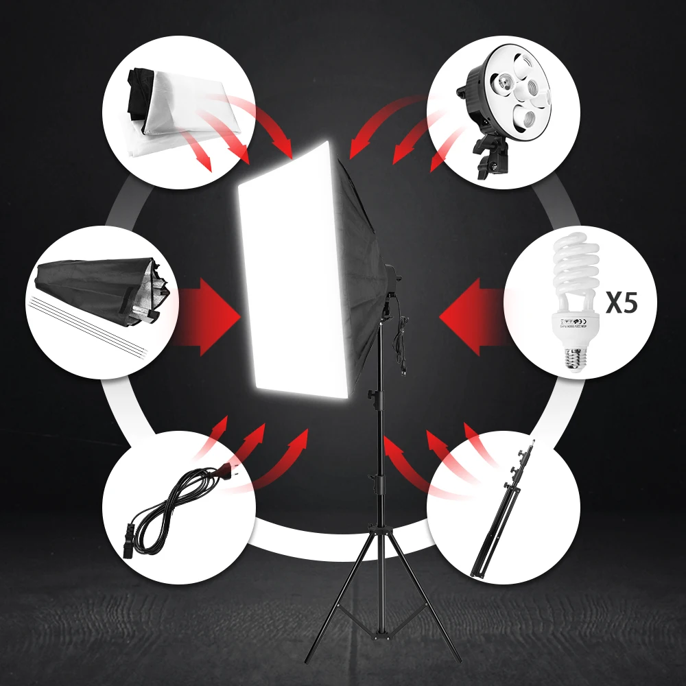 Фон для фотосъемки рамка поддержка софтбокс светильник ing Kit 3375 Вт 5 светильник Socket 50*70 см софтбокс консольный с 4 шт. отражатель фона