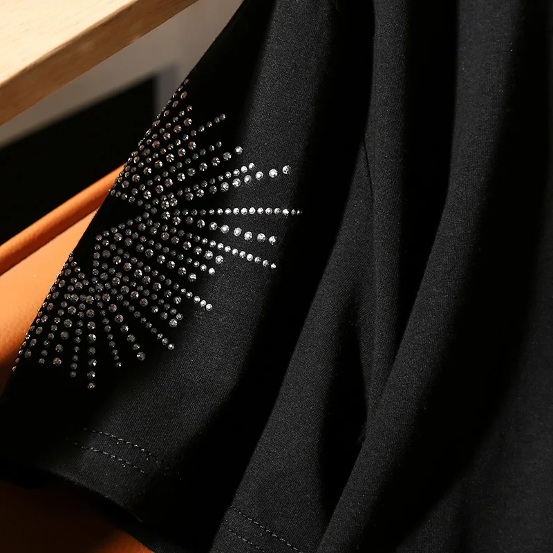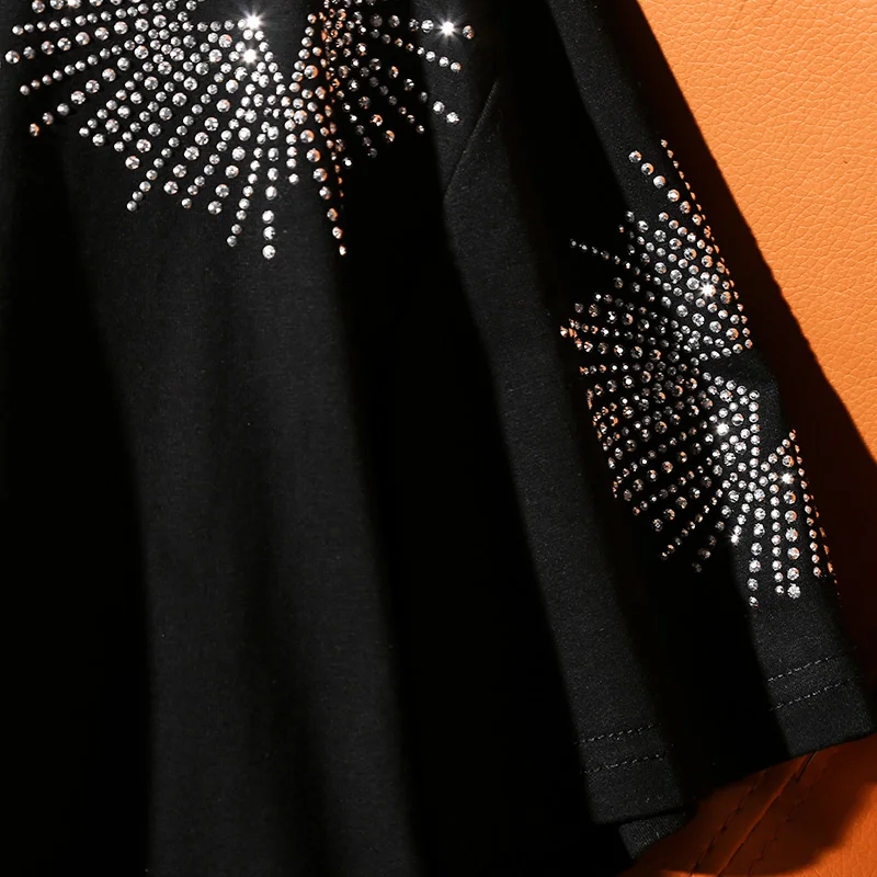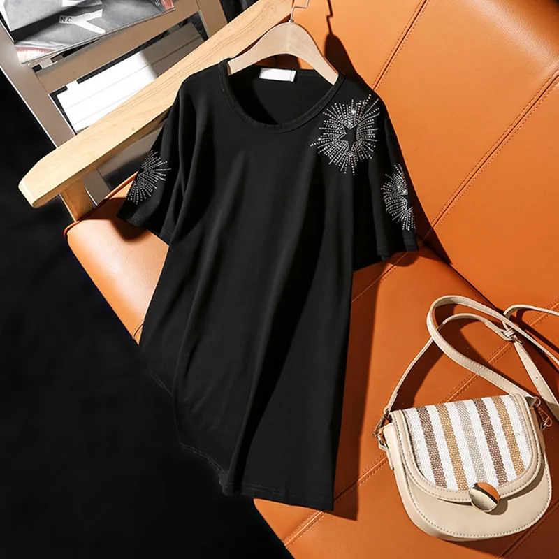 Лето 2021 года в европейском стиле, новая модная свободная дышащая футболка с короткими рукавами для женщин, индивидуальные повседневные женские топы с горячими бриллиантами