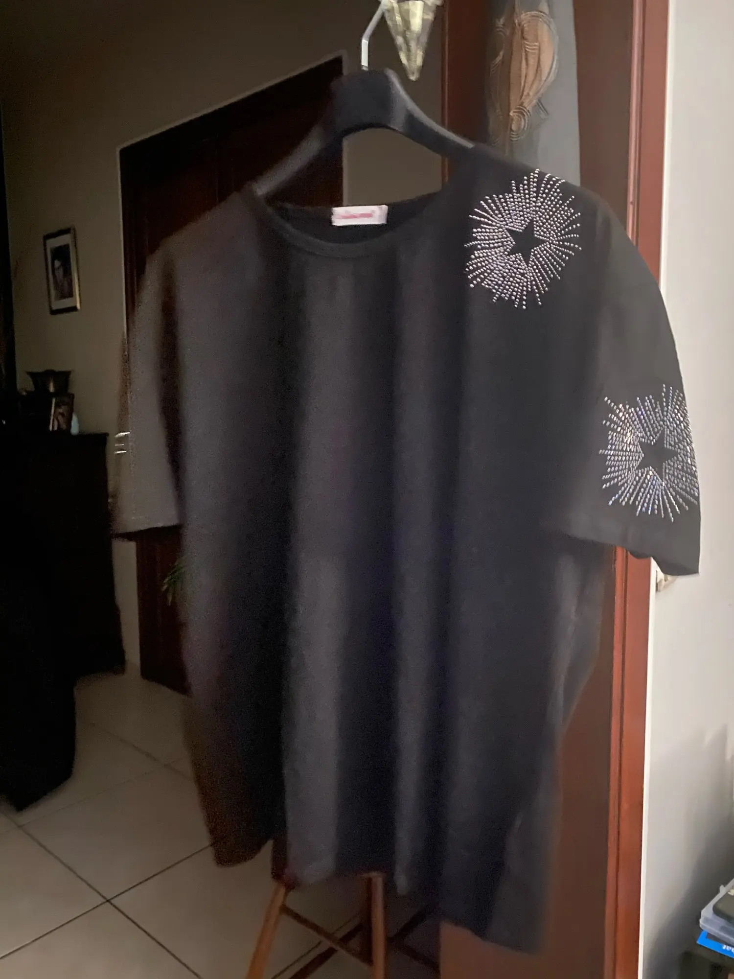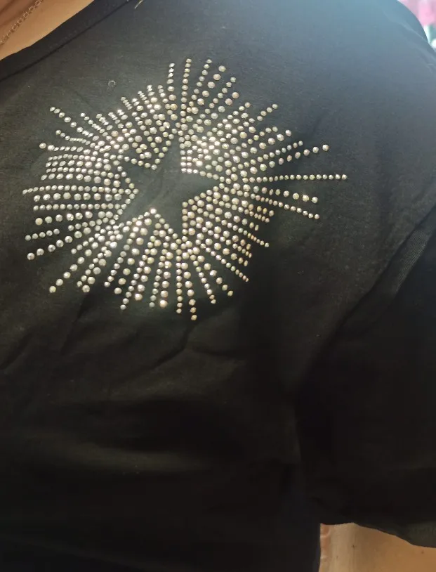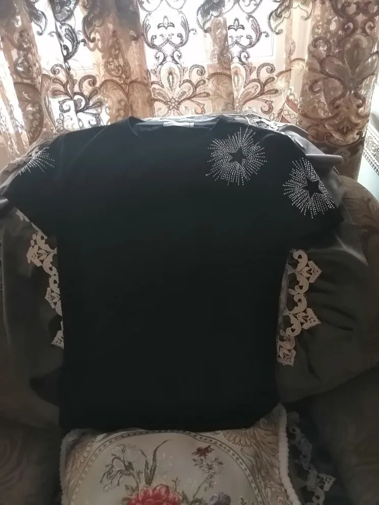 хорошая футболка , стразы сверкают, размеру соответствует. доставка долгая. С продавцом не общались. Товар хороший рекомендую.