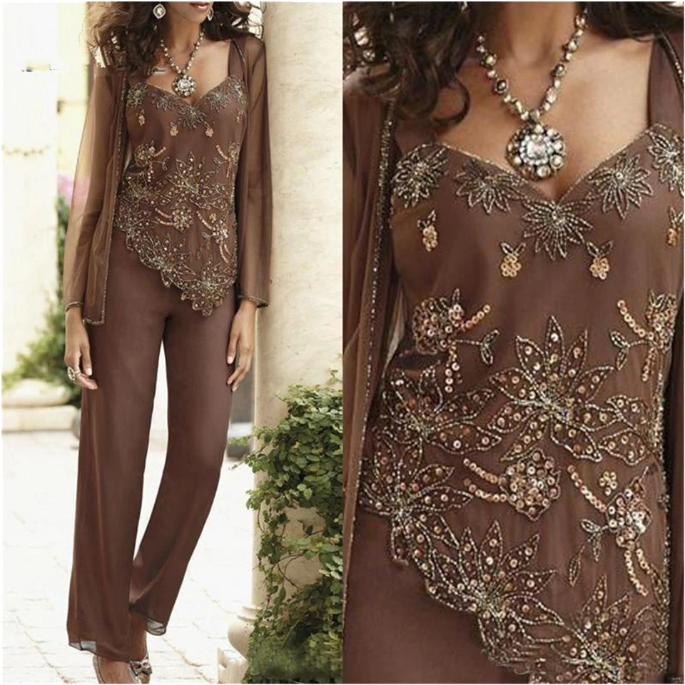 Шифоновые брюки для матери невесты, строгие костюмы, вечернее плать...