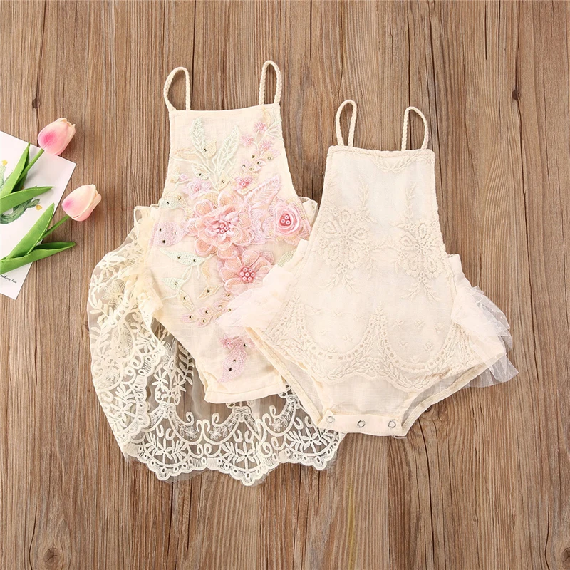 Комбинезон для новорожденных девочек, Кружевной ромпер с цветочной вышивкой, с оборками, без рукавов, с открытой спиной, 2 стиля, 2020