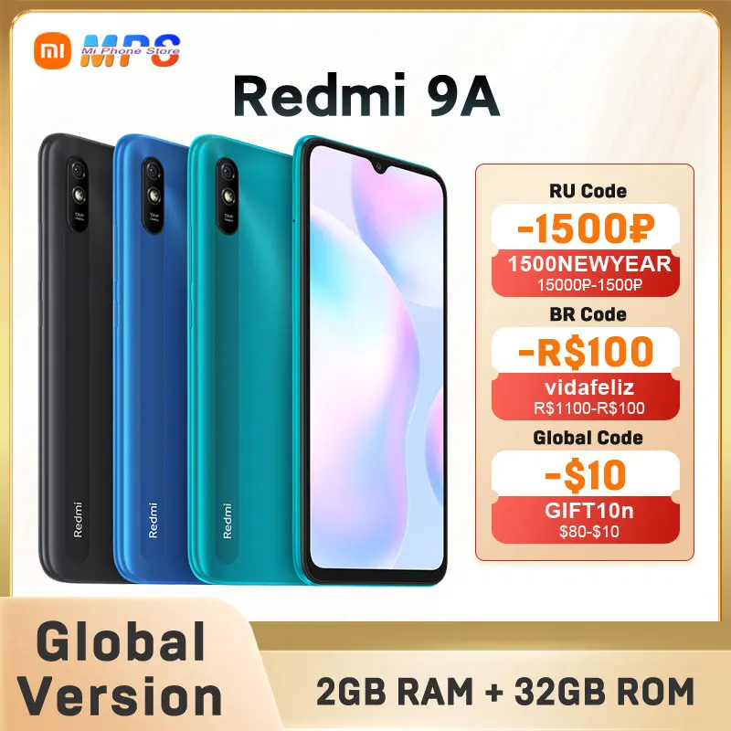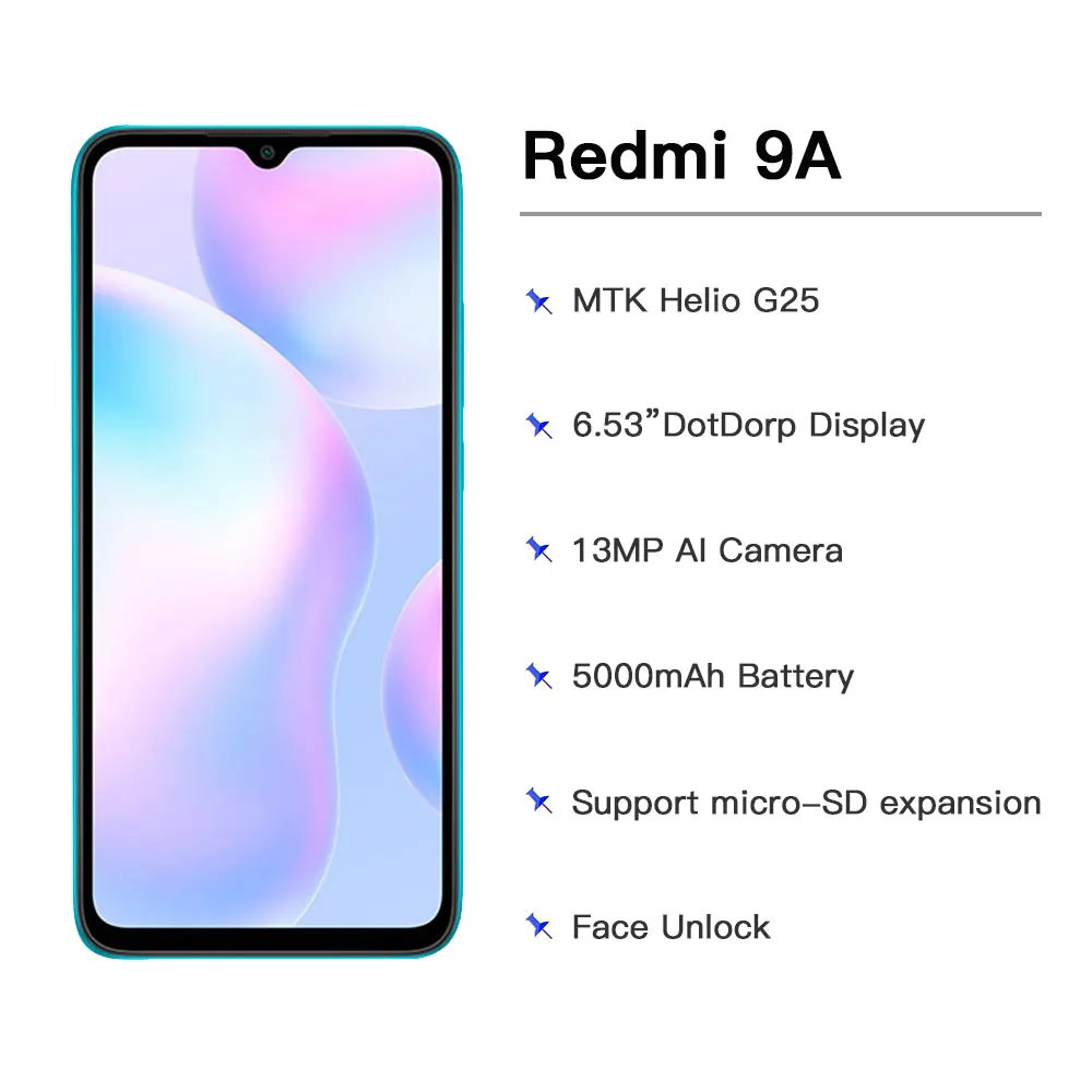 Новая глобальная версия смартфона Xiaomi Redmi 9A мобильный телефон 2 ГБ 32 ГБ MTK Helio G25 Восьмиядерный 6,53 дюйма 5000 мАч 13 МП камера заднего видаXiomi redmi 9a