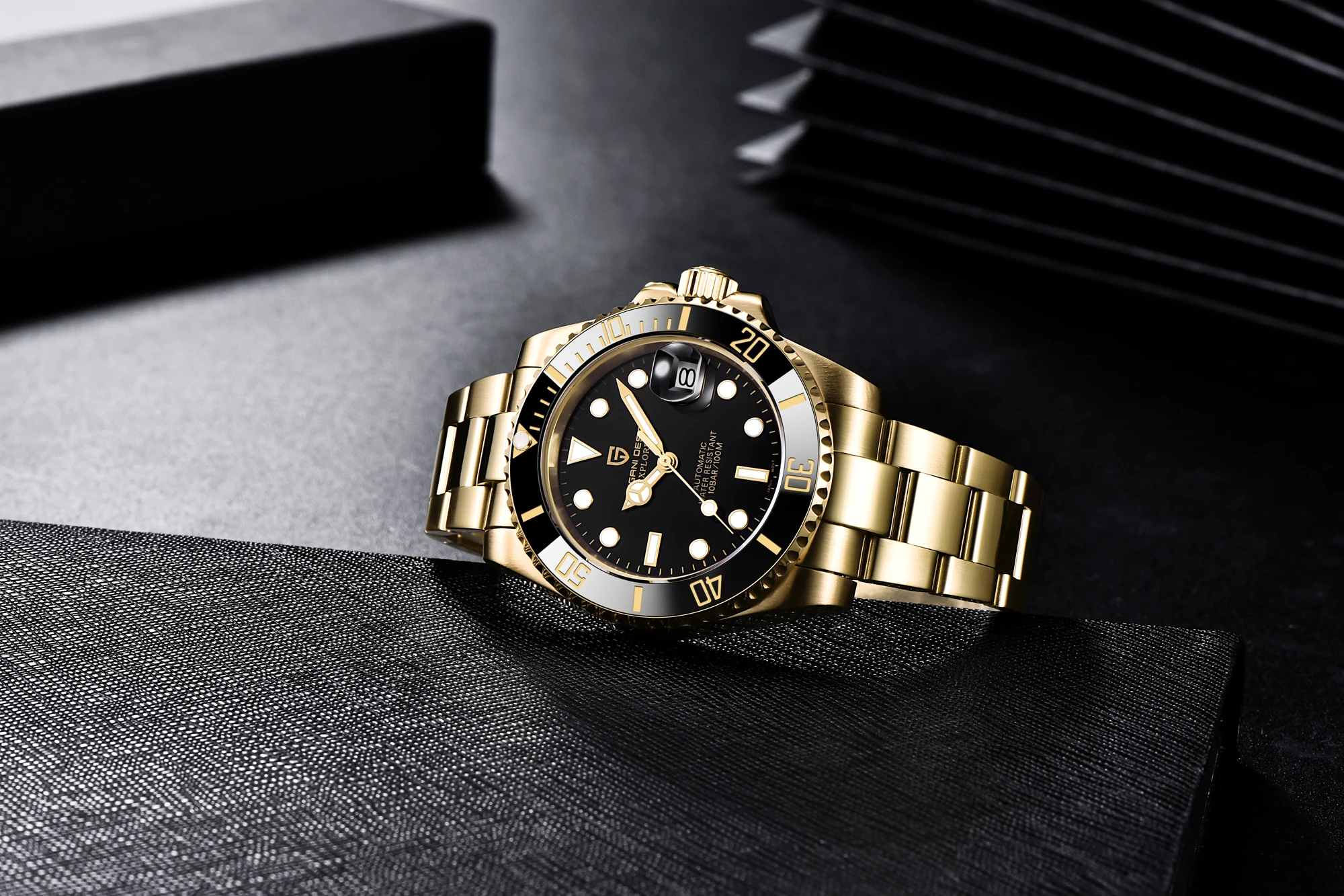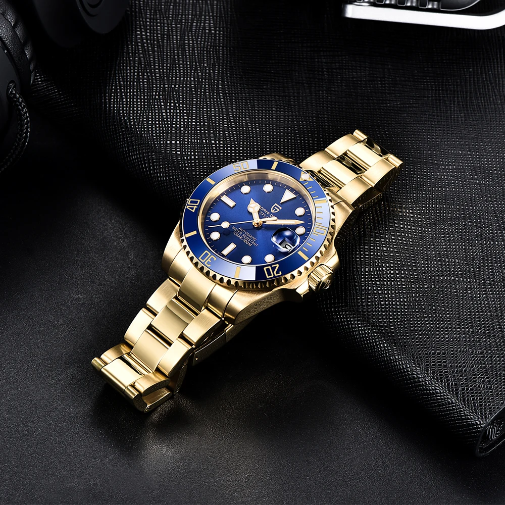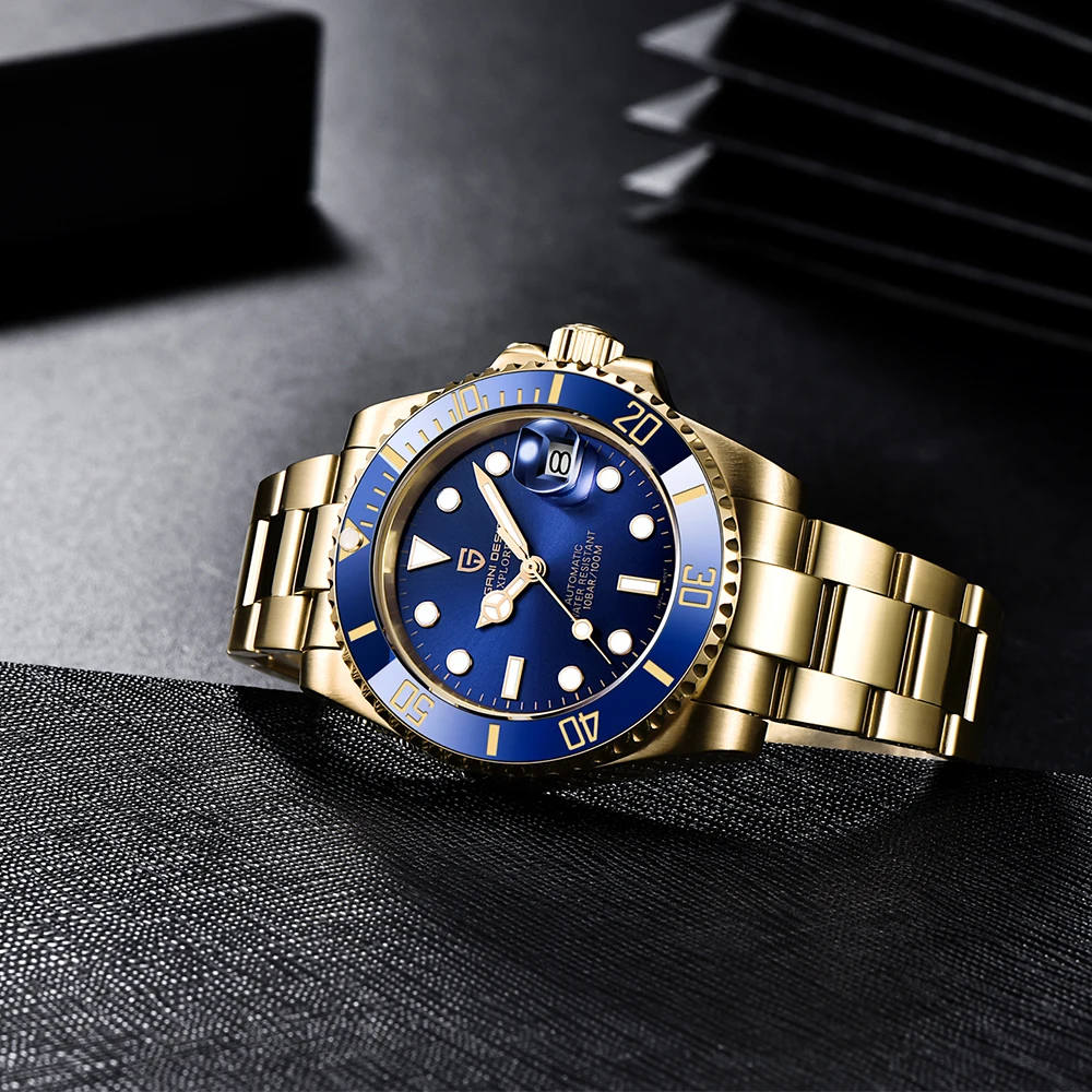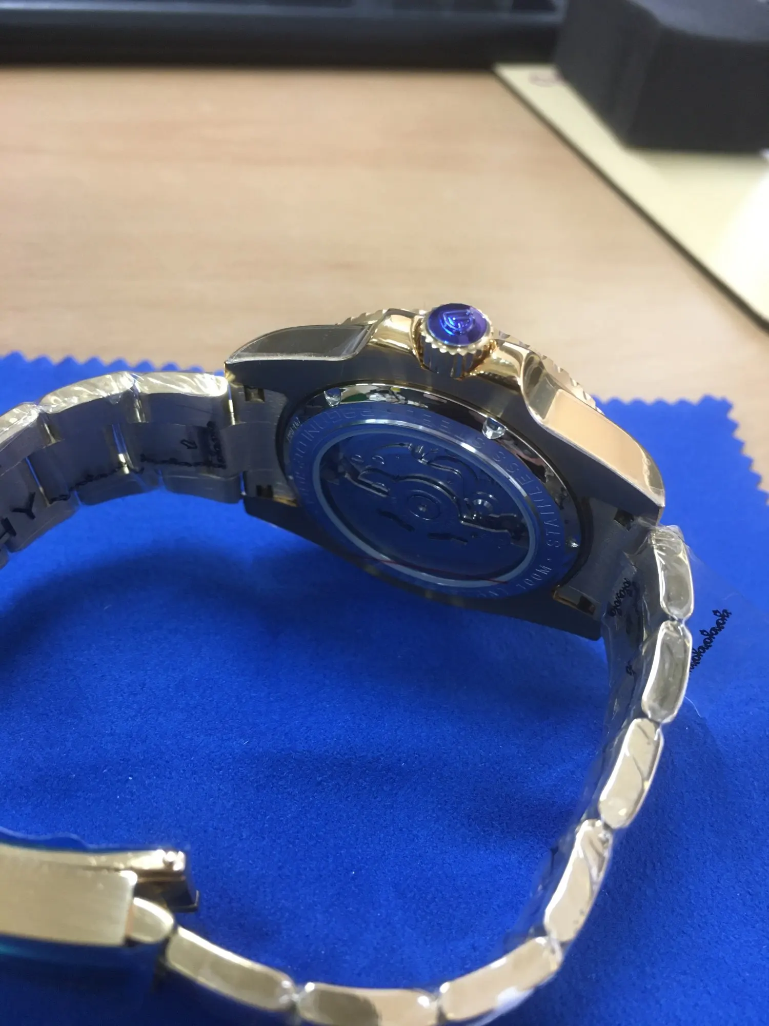 В целом очень хорошее качество за деньги, золотой цвет близок к реальному золоту, подвижный механизм, сапфировое стекло, фрезерованная застежка, керамический ободок, твердые звенья/концевые звенья и отвертки приветствуются добавками по цене. Есть некоторые негативы, ободок немного свободный, выравнивание ободка, циклоп и некоторые из часовых маркеров немного выключены, а расширение погружений очень жесткое, по крайней мере, на часах, которые я был отправлен. Однако я доволен часами, вы не можете ожидать мир по этой цене.