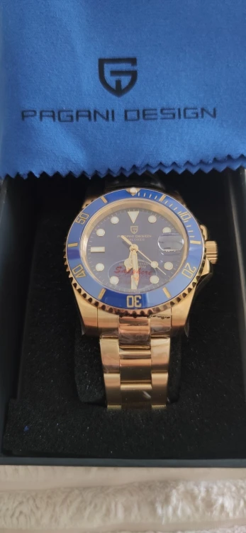 Очень медленная доставка (один месяц), в противном случае эти часы являются отличным соотношением цены и качества. Потрясающе выглядит, хороший вес, выглядит как более дорогие часы. Я еще не проверил его на точность, я бы снова купил часы Pagani Design.