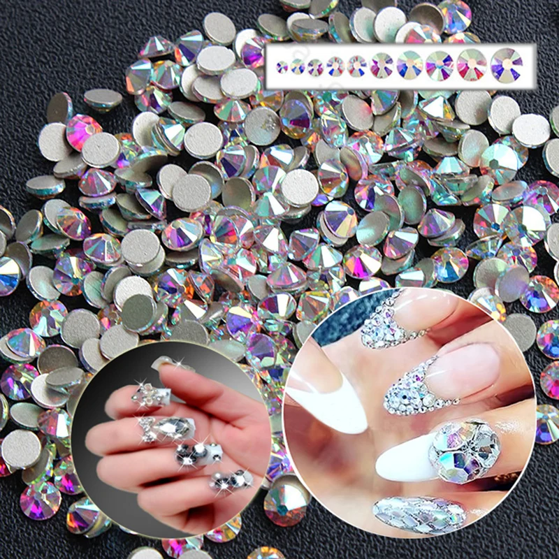 Стразы для ногтей Yanruo Crystal AB Стразы для рукоделия дизайн ногтей с плоской задней поверхностью без горячей фиксации клей для 3D дизайна ногтей DIY хрустальные украшения