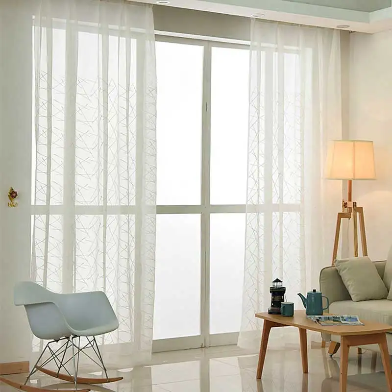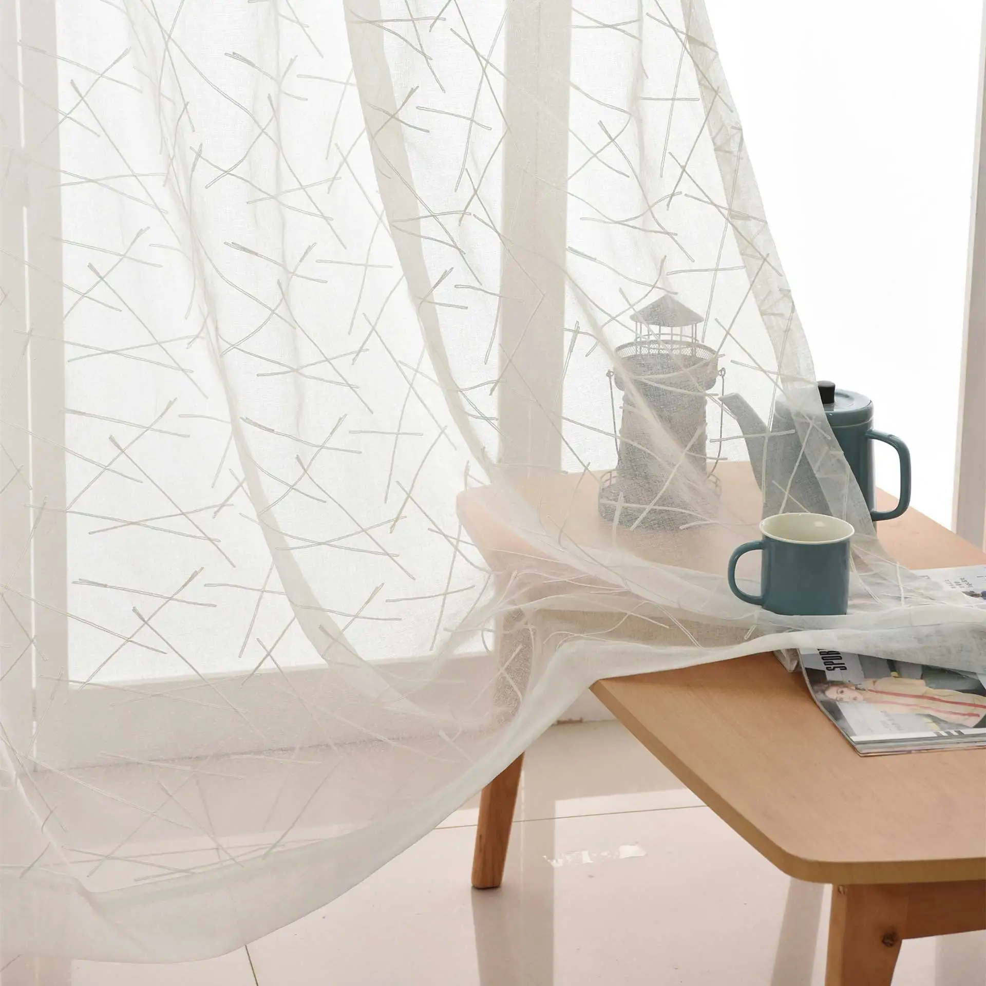 Белая Тюлевая занавеска с вышивкой для гостиной, прозрачная занавеска с геометрическим рисунком для спальни, занавески из вуали, занавески, готовые шторы
