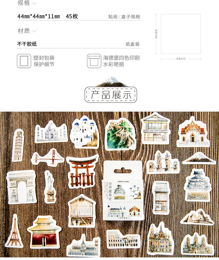 45 шт.лот Kawaii канцелярские наклейки известная Живопись Альбом де...