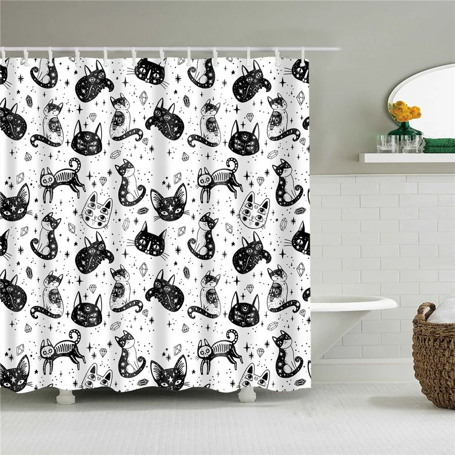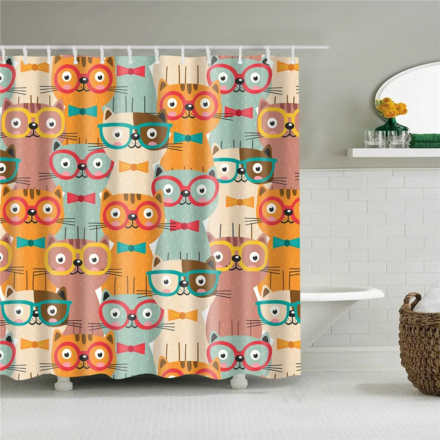 Водонепроницаемые душевые занавески с единорогом из альпака и котом