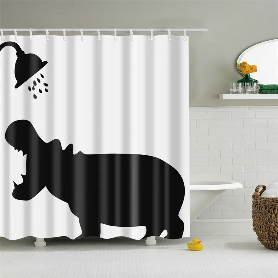 Занавеска для душа из полиэстера, водонепроницаемая, черно-белая