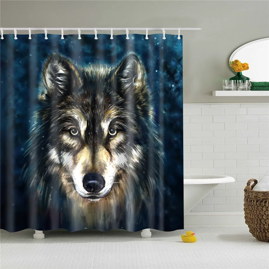 Декоративная занавеска для душа с животными, слон, кошка, волк, пан...