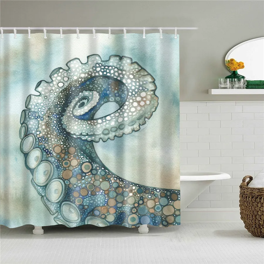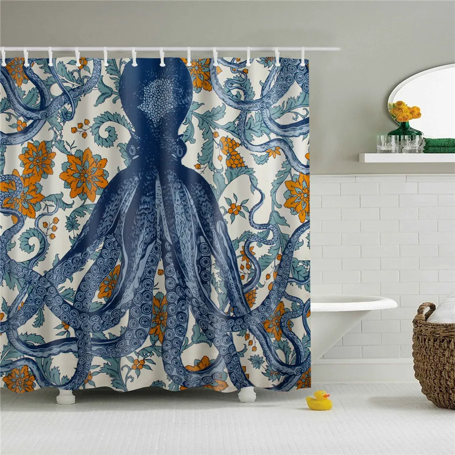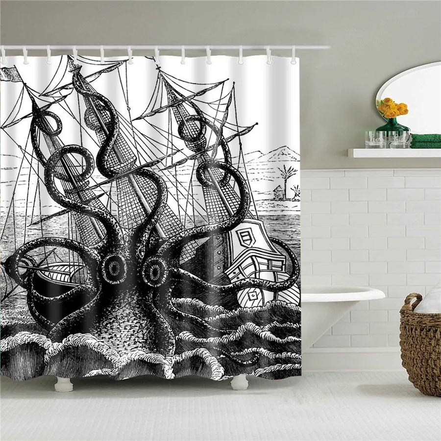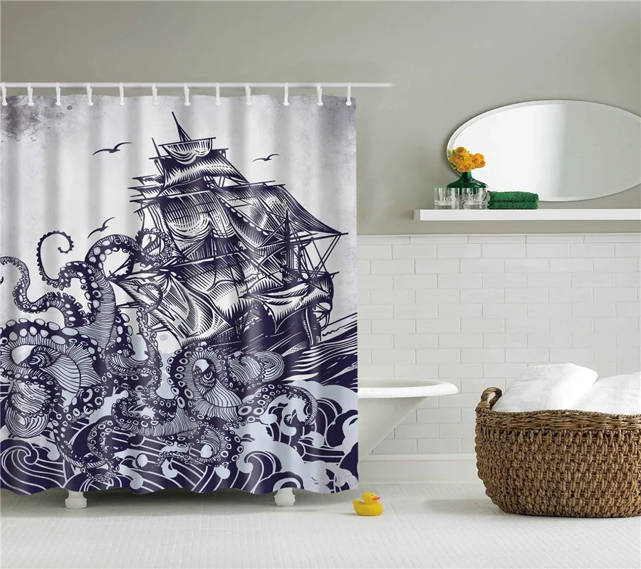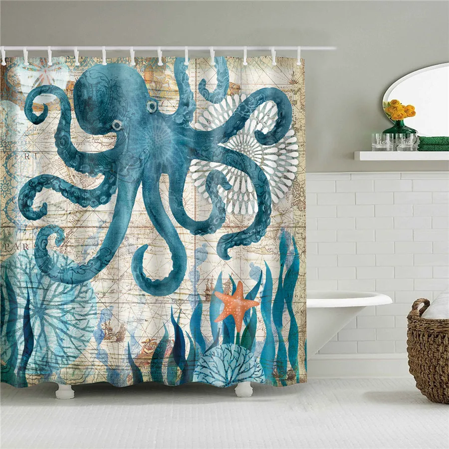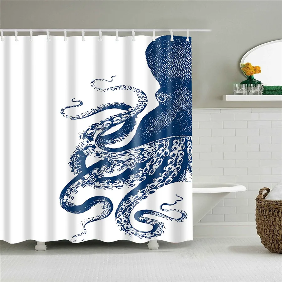 Занавеска для душа с крючками, занавеска для ванной, якорь, осьмино...