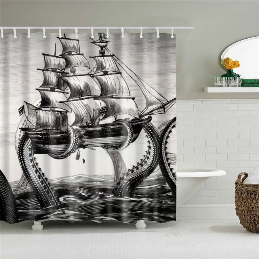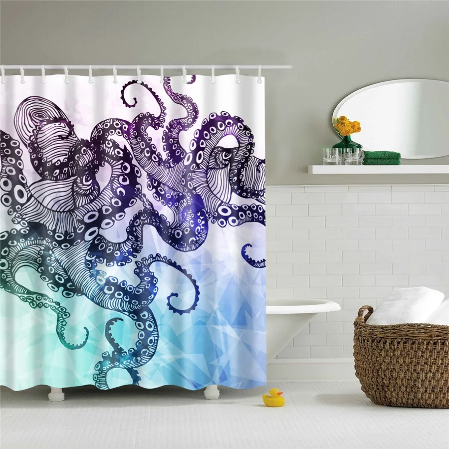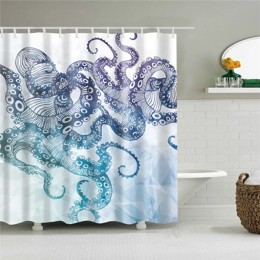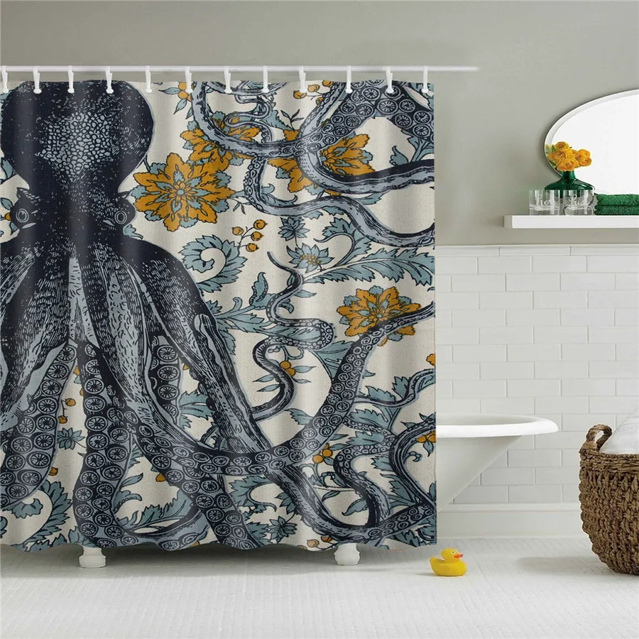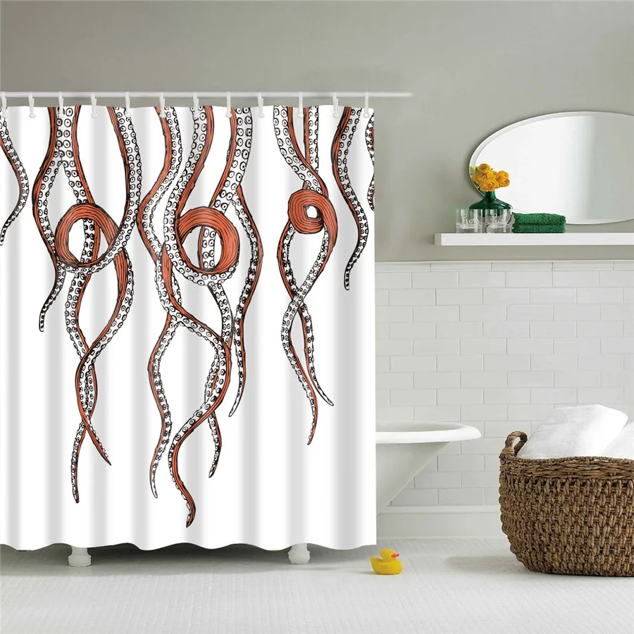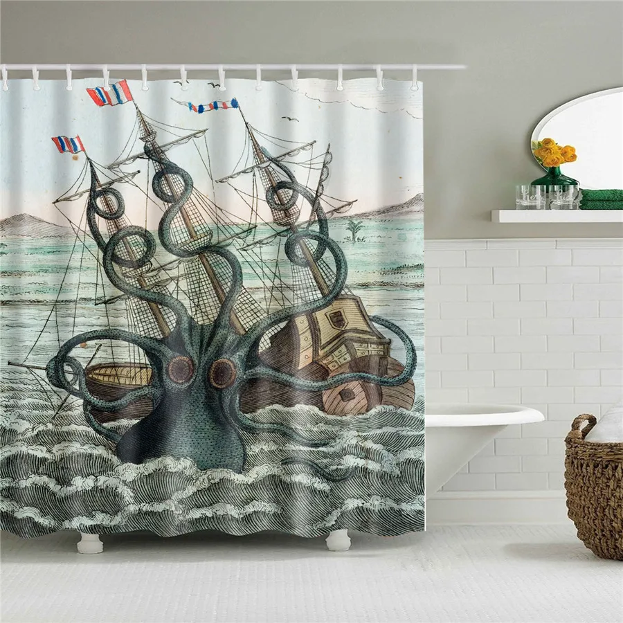Занавеска для душа с крючками, занавеска для ванной, якорь, осьмино...