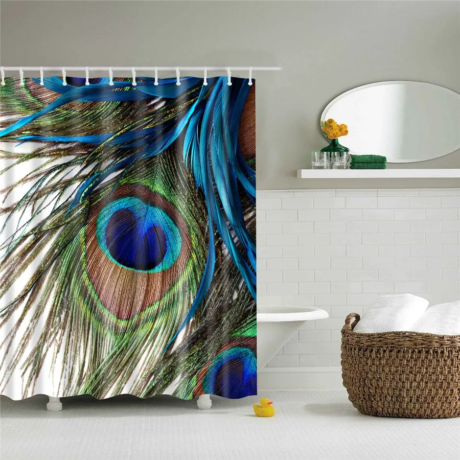 Занавеска с узором в виде перьев для ванной комнаты, занавеска для ...