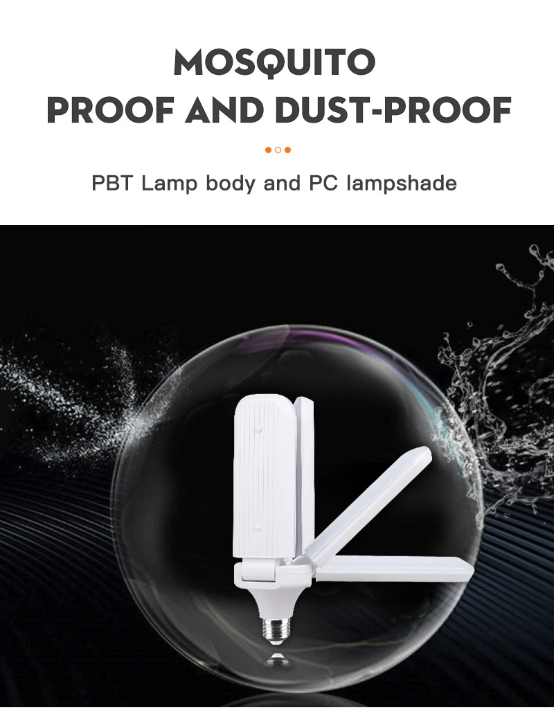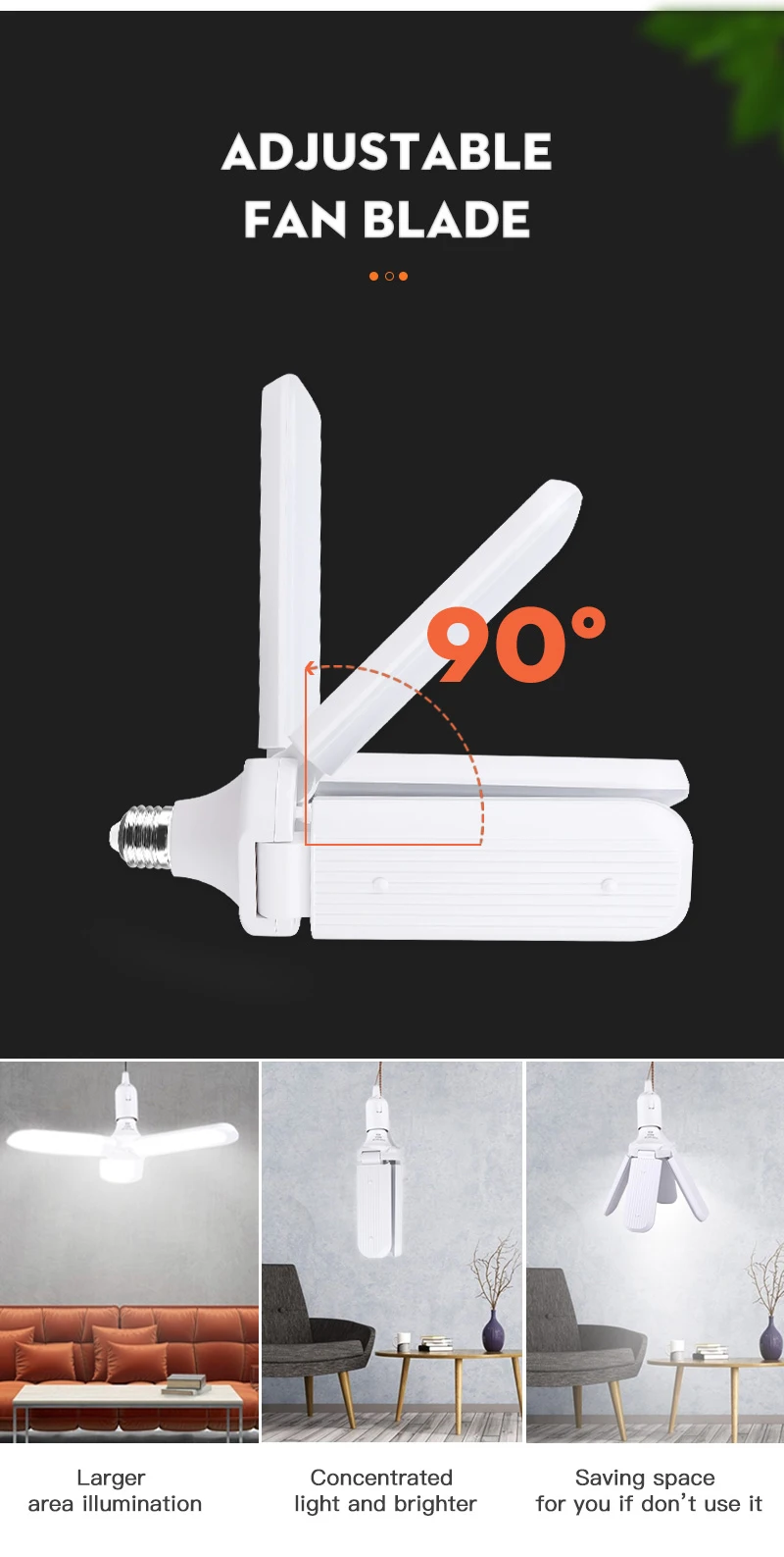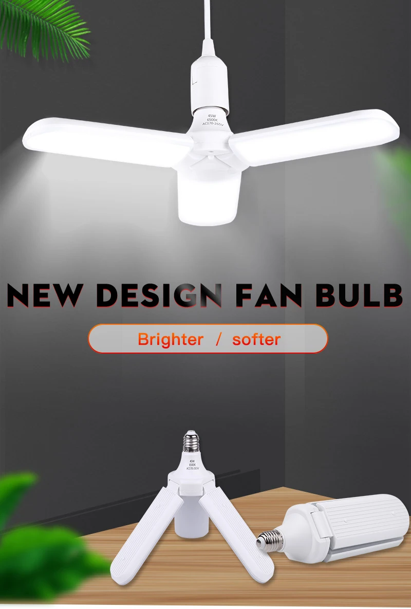 Светодиодная лампа E27, складной Вентилятор 220 к, 6500 в, 30 Вт, 45 Вт, 60 Вт, 80 Вт
