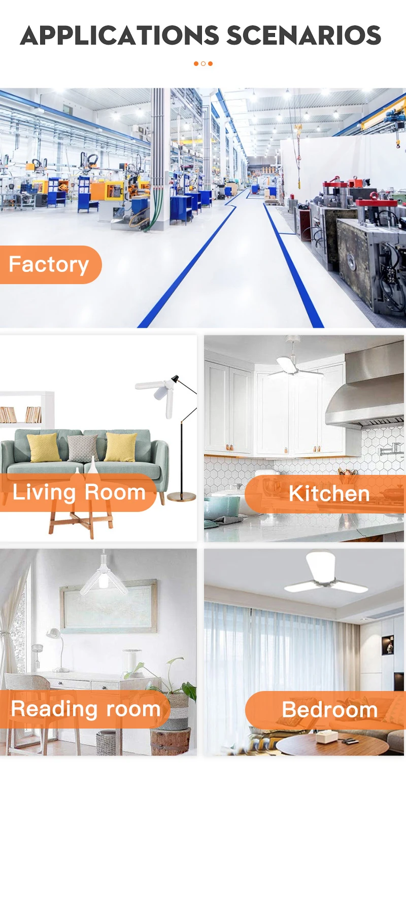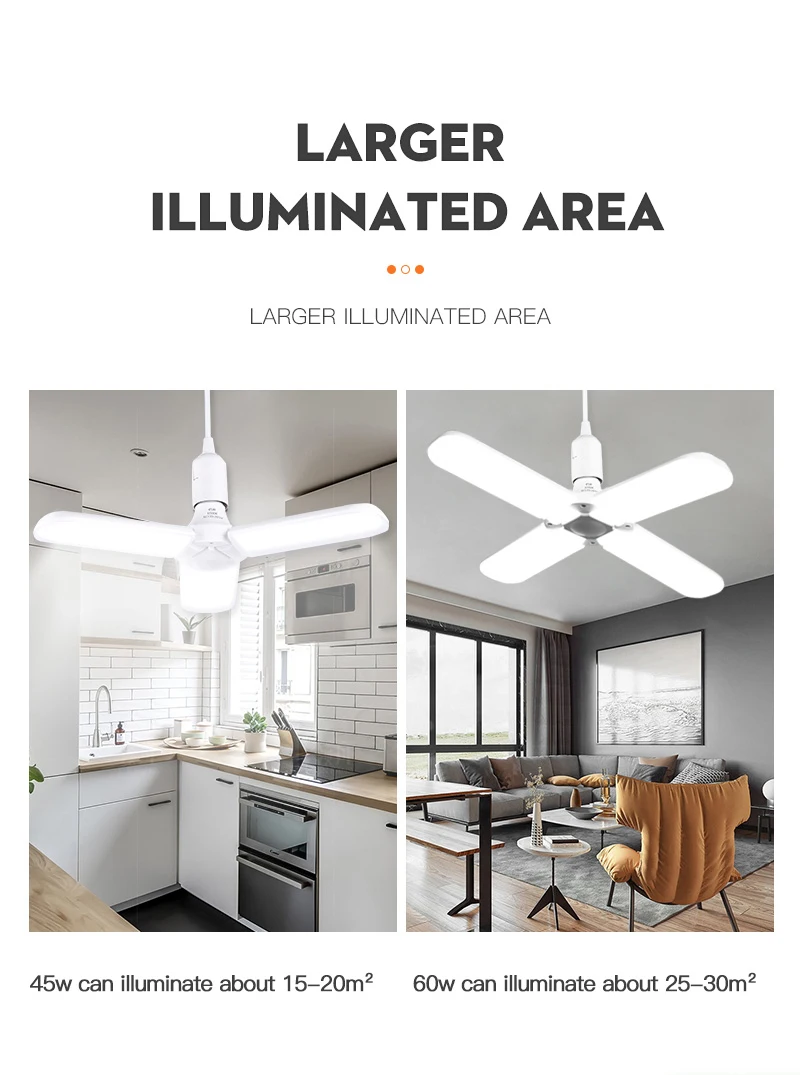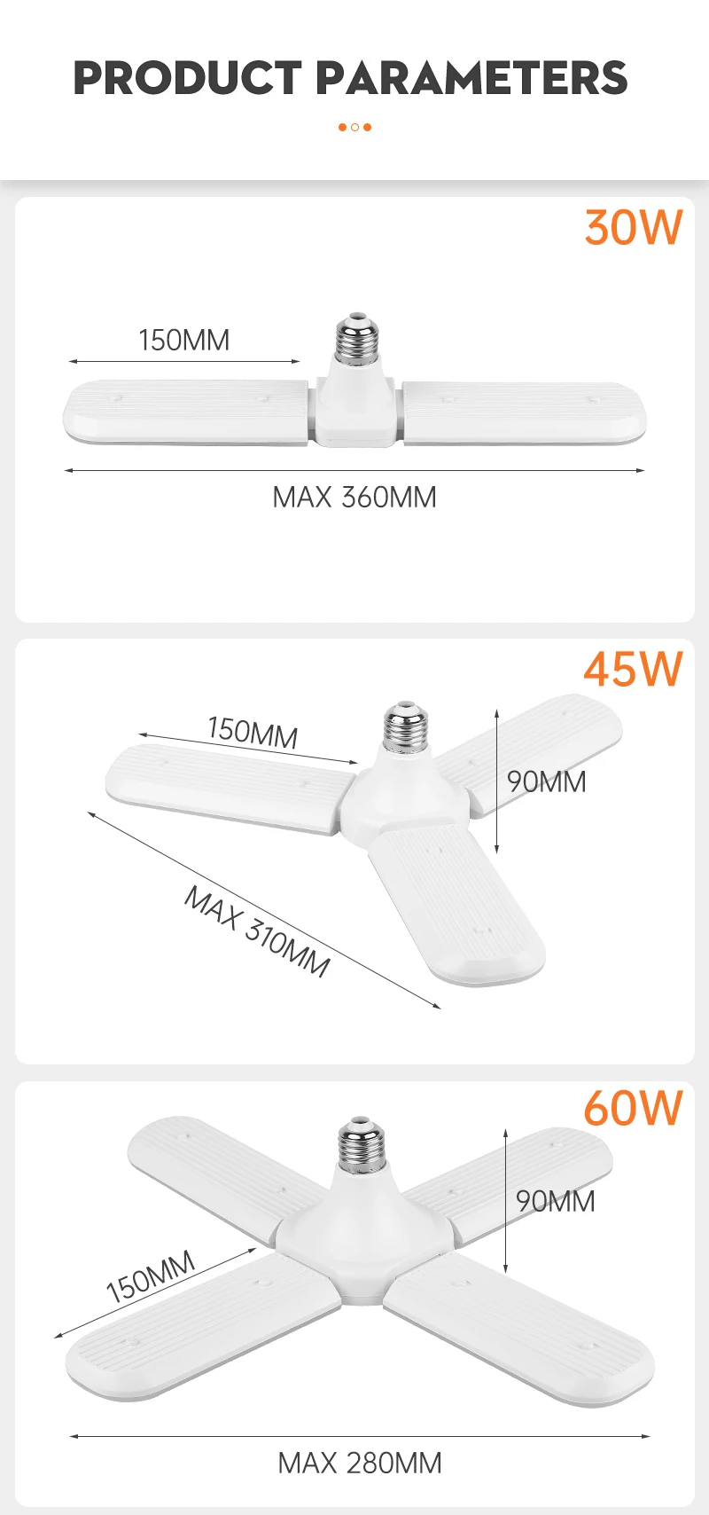 Светодиодная лампа E27, складной Вентилятор 220 к, 6500 в, 30 Вт, 45 Вт, 60 Вт, 80 Вт