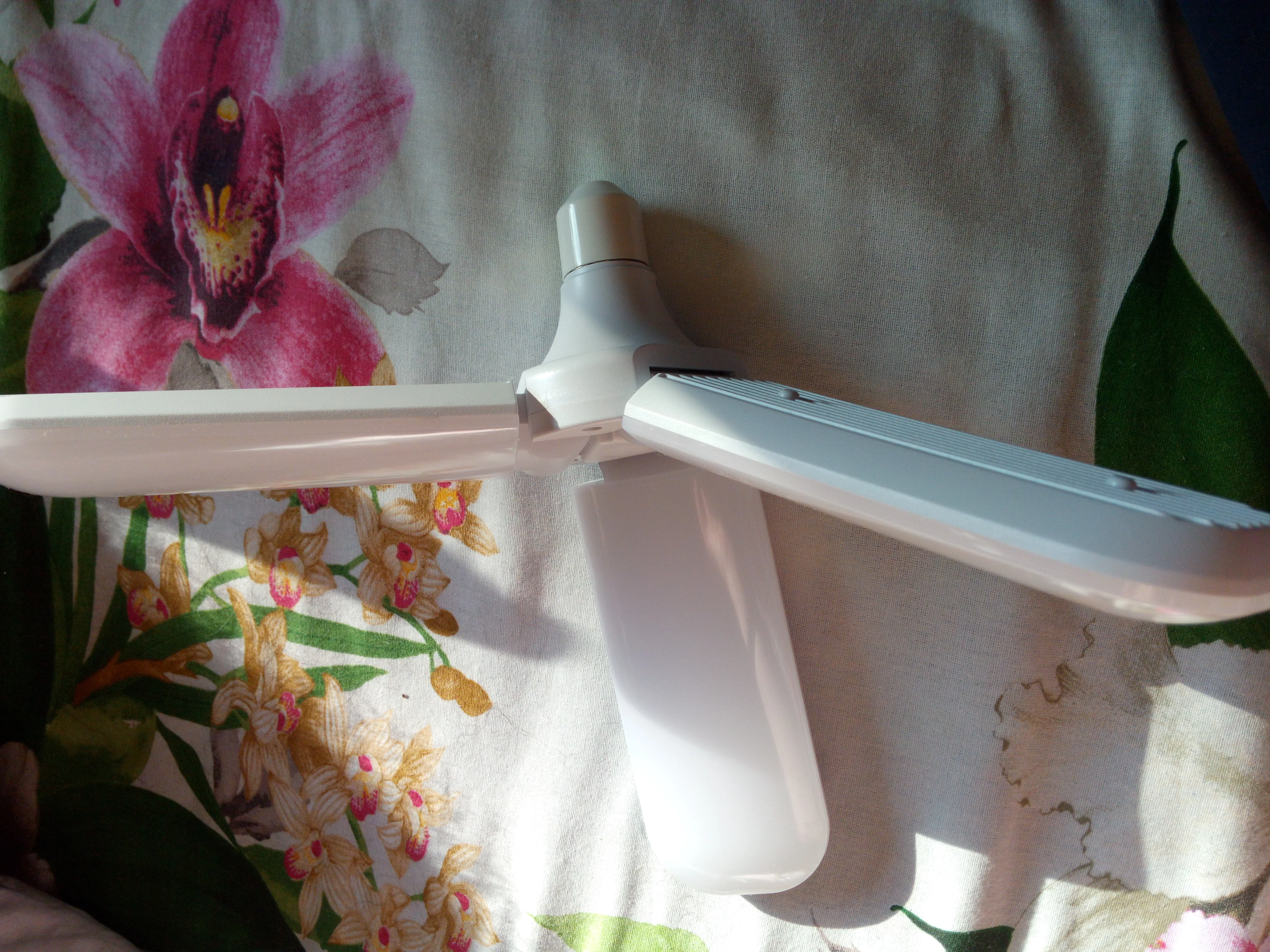 Продавец долго отправлял заказ, но пришло в срок. В сложенном состоянии лопасти немного хлюпают. А в основном светит хорошо.