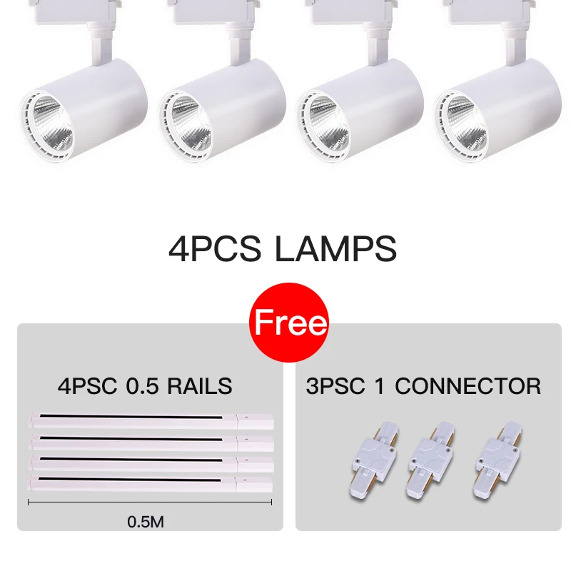 Набор алюминиевых трековых светодиодных светильников, s-образные направляющие, 12 Вт, 20 Вт, 30 Вт, 40 Вт, Светодиодный точечный светильник, лампа для дома, магазина, трековое освещение