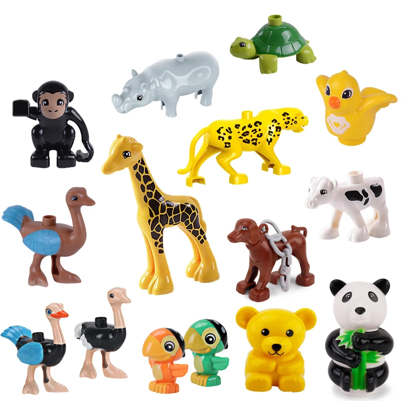 Животные большого размера, Страус, пингвин, кошка, панда, корова, птица, обезьяна, коза, собака, динозавр, лиса, фигурки, игрушки, строительные блоки большого размера, животное, зоопарк, ферма