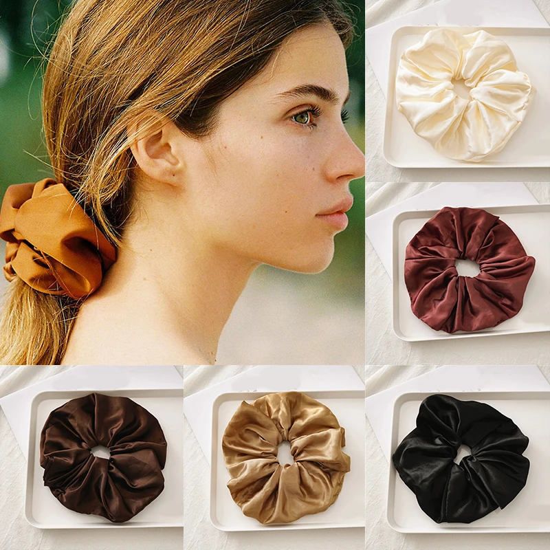 Большие резинки, эластичные резинки для волос, однотонный цветной хвост, аксессуары для волос, резинка для волос, атласные резинки для волос для женщин и девочек