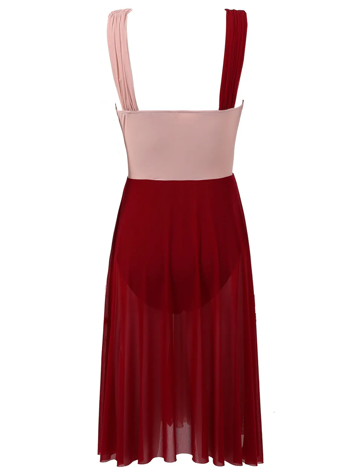 Особенности: Женское лирическое современное танцевальное трико платье для взрослых, хорошая эластичная ткань. Тонкие регулируемые бретельки на бретельках с сетчатым наплечным слоем, с низкой спинкой и цветным блочным дизайном, застежка-липучка. Приталенная многослойная сетчатая юбка с разрезами для элегантного образа, длиной до колена. Пропускающее воздух, мягкое и удобное в носке изделие. Подходит для лирического танца или классического танца, танцевальных упражнений, соревнований и выступлений и т. д. Пожалуйста, проверьте информацию о размере перед покупкой, рекомендуется ручная стирка, машинная стирка.