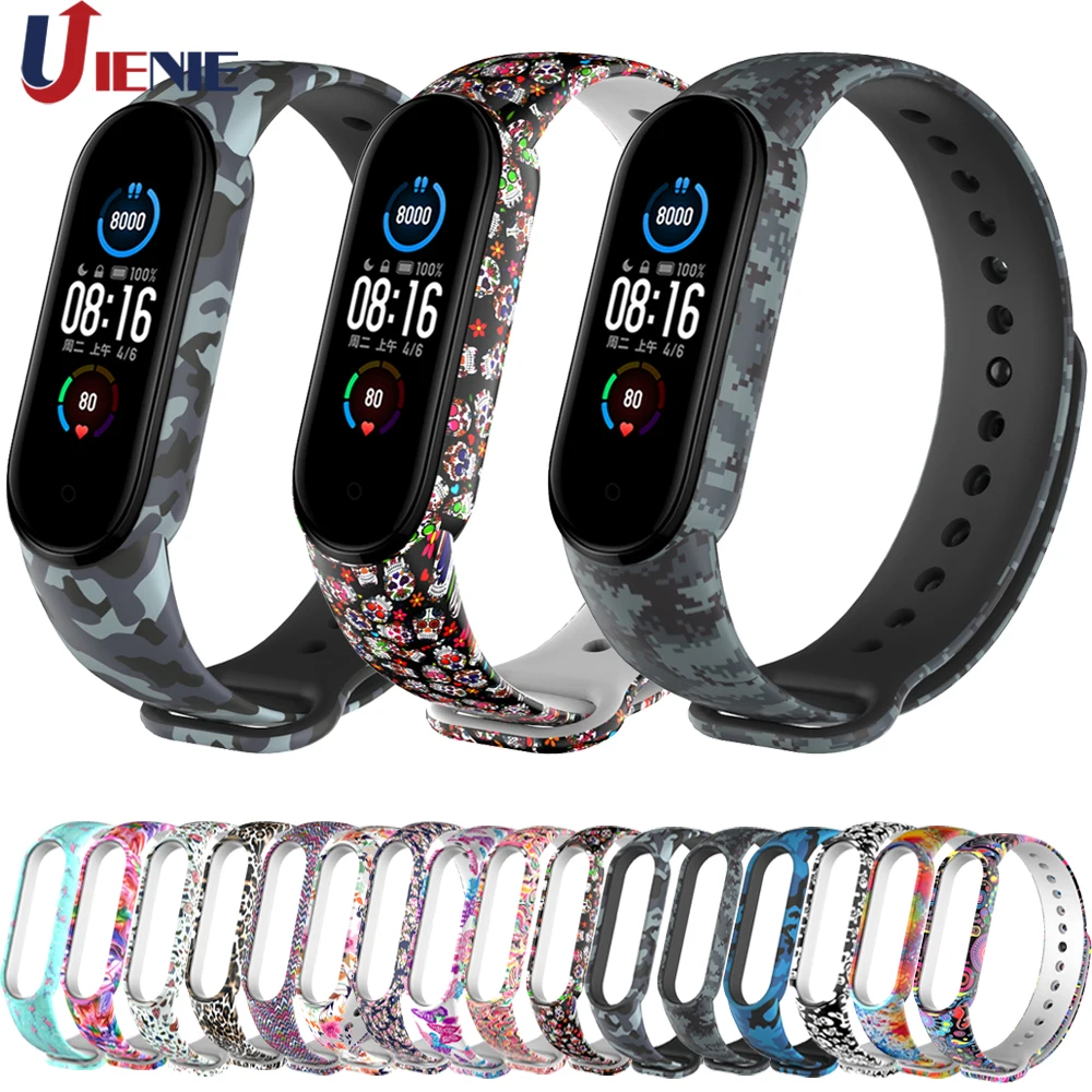 Ремешок для Xiaomi Mi Band 5, силиконовый браслет с камуфляжным при...