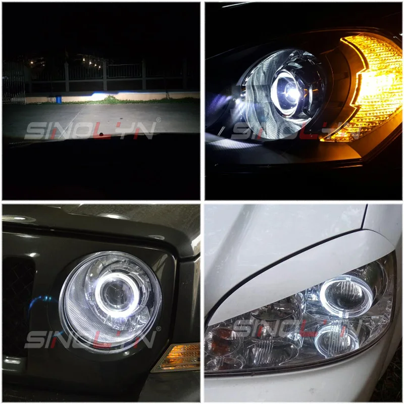Автолампа Sinolyn, светодиодные Биксеноновые лампы ангельские глазки для головных фонарей H4 H7, 3-дюймовый переключатель DRL, Лампа H1, автомобильные аксессуары