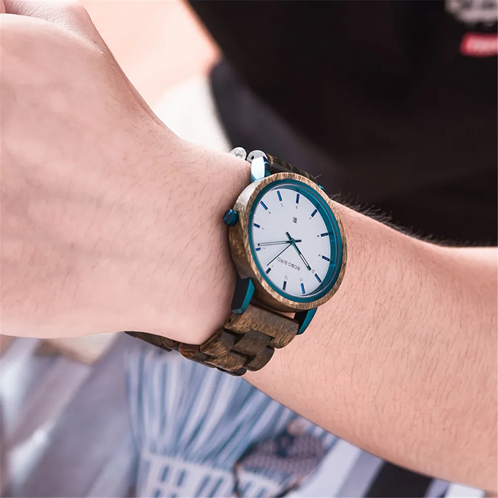 BOBO BIRD деревянные часы для мужчин и женщин, мужские Роскошные Кварцевые наручные часы ручной работы из натурального дерева в подарочной коробке, Прямая поставка, relogio masculino