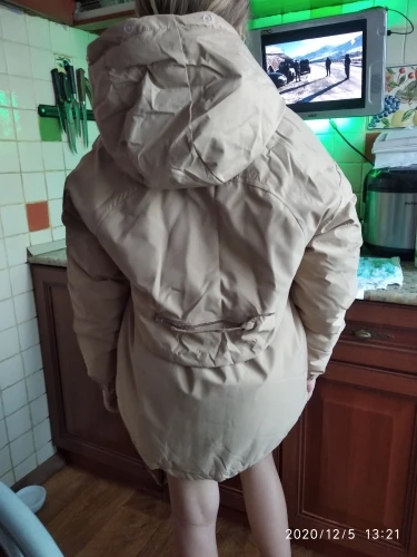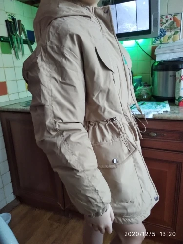 В целом - куртка хорошая. Когда только распечатала посылку, подумала, что слишком тонкая (будто на осень). Но в -15° не замёрзла совершенно. Из минусов - верхние клапаны с верёвочками были пришиты косо и криво, на разной высоте - я их убрала. Ещё проблема - куртка по размеру, но низ почему-то сшит уже, и приходится иногда подтягивать вниз. Словно чуть маловата. Если бы примеряла в магазине - точно не взяла бы.