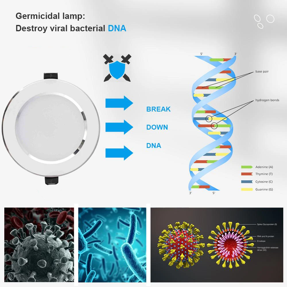 Тип: светодиодный светильник UVC Светильник: Ультрафиолетовый Мощность: 3 Вт Напряжение: 85-265 В переменного тока Светодиодный чип: 7 шт. 3535 + 14 шт. 2835 SMD Длина волны UVC: 270 нм Материал: алюминиевый сплав + светодиодный Рекомендуемая частота: 2-3 тайма/неделя Предполагаемое время: 20-30 минут один раз Размер: Внутренний диаметр: 70 мм Внешний диаметр: 97 мм Высота: 26 мм Светодиодный срок службы: более 50000 часов Сертификаты CE & RoHS Применение: для использования в помещении, для дома, спальни, гостиной, кухни, туалета, отеля, дезинфекции больницы.