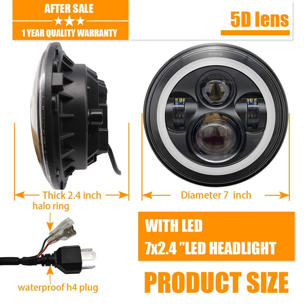 Описание: 45 Вт, 6000K, 7 дюймов, Круглый, 50000 часов, IP67 Питание светодиодов: чип CREE Рабочее напряжение: подходит для автомобилей 12 В Цветовая температура: 6000 K Луч: Дальний свет 45Вт 3400лм, ближний свет 30Вт 2600лм Материал: литой алюминиевый корпус Объектив: прочный ПК Цвет корпуса: черный Цвет глаз ангела: желтое кольцо или белое кольцо, вы можете изменить его самостоятельно. Размер: (7 дюймов) Срок службы: 50000 часов Сертификация: CE SAE IP67 DOT E-MARK Упаковка включает: 2 светодиодные фары Монтаж: для Lada 4x4 urban Niva