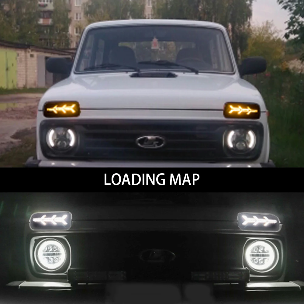 2 шт., 7-дюймовые светодиодный светильник фары поворота, фары ДХО, светодиодный ные дневные ходовые огни для Lada Niva 4x4, автомобильные передние противотуманные фары