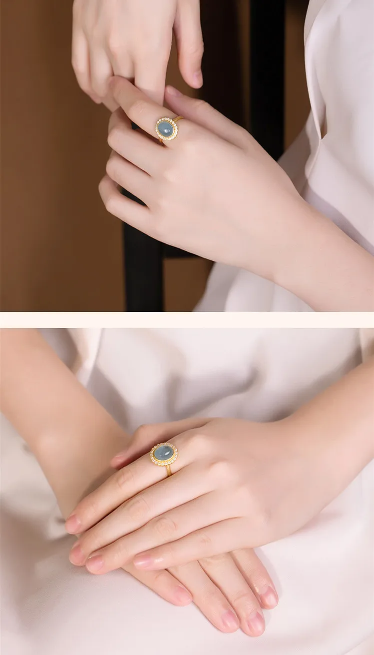 Женское кольцо из серебра 925 пробы, с натуральным нефритом