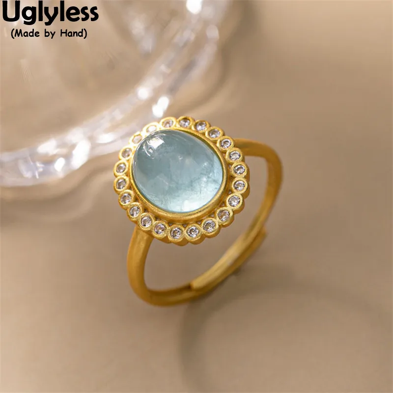 Роскошные кольца Uglyless с натуральным голубым топазом для женщин ...