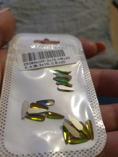 Доставка быстрая. Продавец отправил товар без задержки.Посылка отслеживалась до момента получения в почтовом отделении адресатом. Пришла без повреждений, все отлично упаковано. Качество отличное. Точное соответствие с описанием и фото продавца. Стразы стеклянные каплевидной формы, удлиненные, 20 штук. Очень-очень красивые, переливаются всеми цветами радуги, на ногтях смотрятся супер, в носке отлично. Я в восторге! Заказала этот товар уже в третий раз. Товаром очень довольна, буду заказывать еще. Спасибо продавцу за прекрасное обслуживание. Очень рекомендую товар и продавца.
