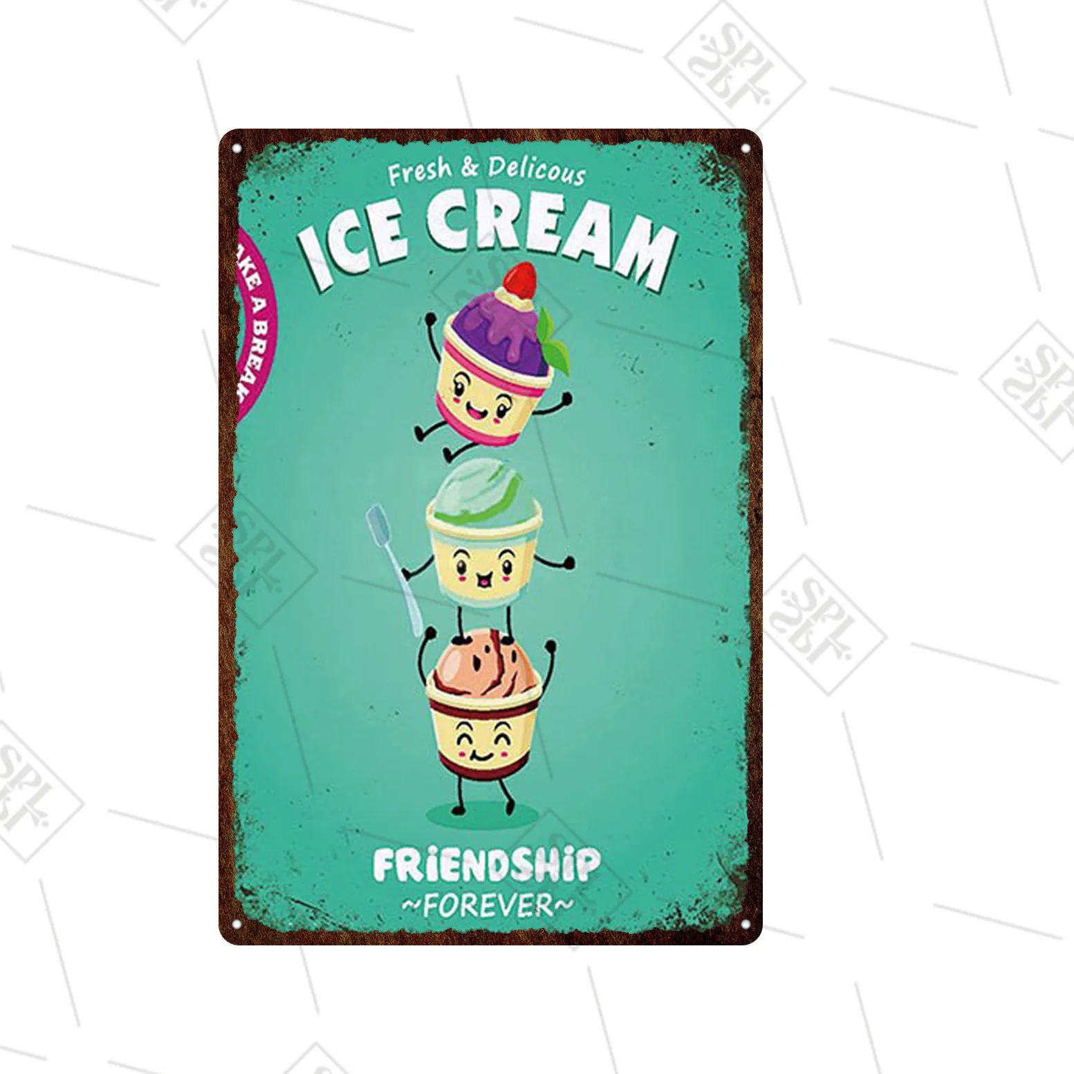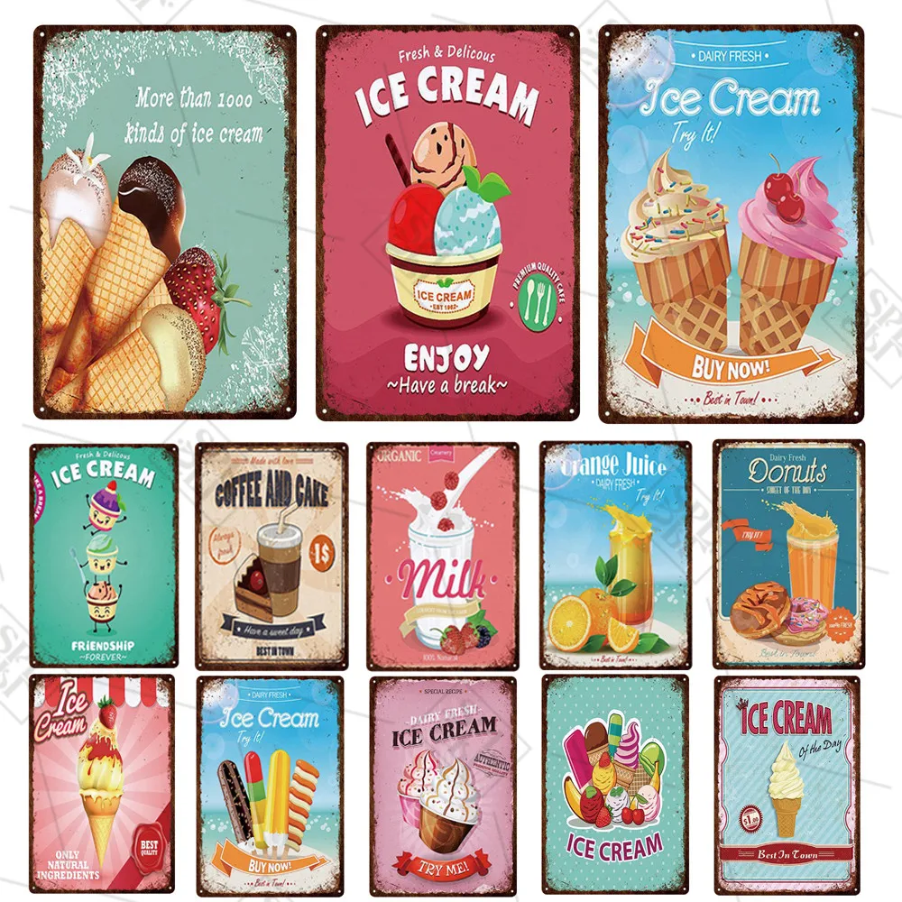 Металлический постер с изображением сока, холодного напитка, вывеска магазина, 20x30 см, металлическая табличка с логотипом винтажная жестяная тарелка, с изображением мороженого
