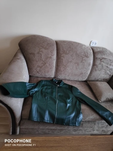 это не кожаная куртка. даже не знаю как и назвать, наверное,бомбер. пришло быстро,размерная сетка соответствует. очень тоненькая