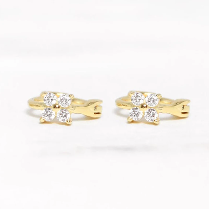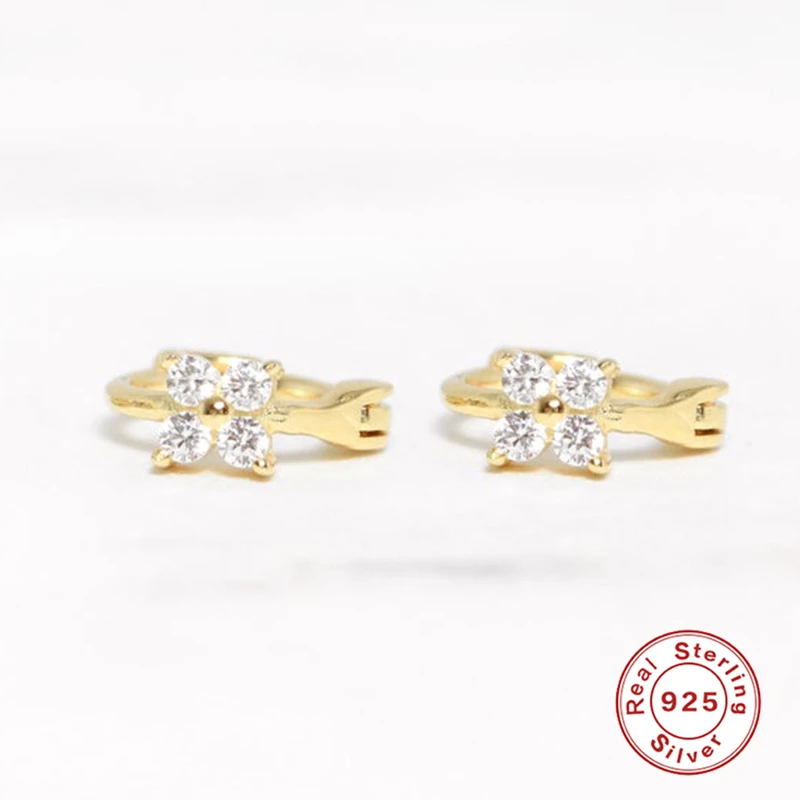 Женские серьги-гвоздики с четырьмя листьями из стерлингового серебра 925 пробы, серьги с цирконием и бриллиантами, ювелирные изделия