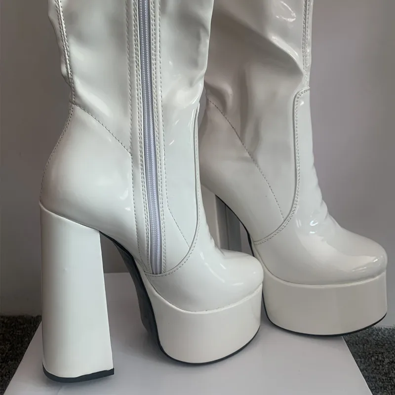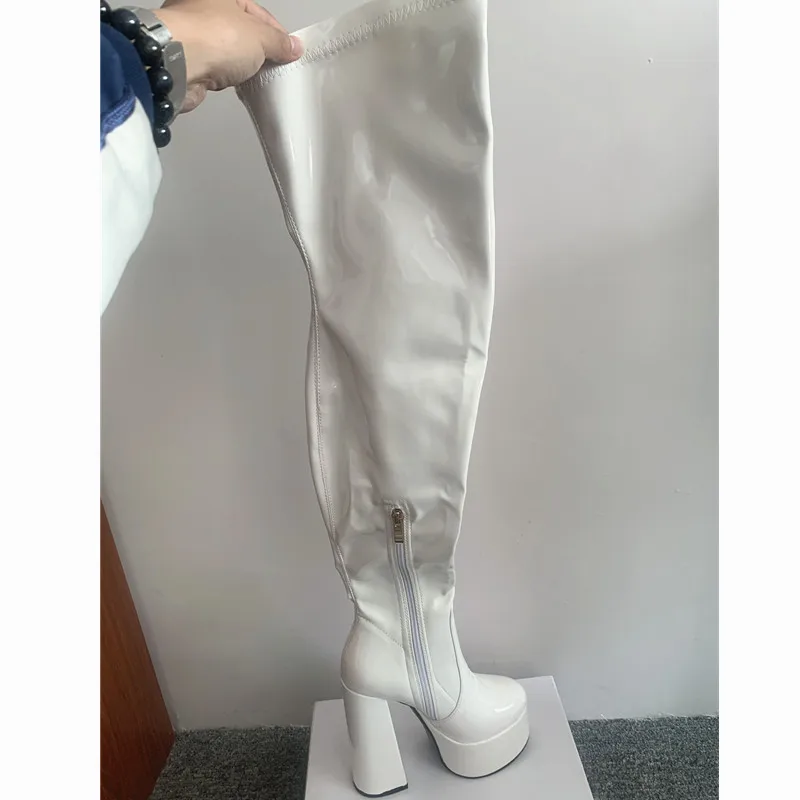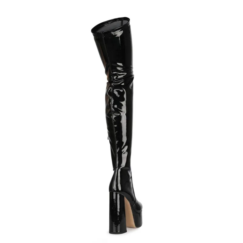 Женские высокие сапоги Mstacchi, блестящие сапоги из лакированной кожи на высокой платформе, пикантные однотонные сапоги на высоком каблуке, женские высокие сапоги