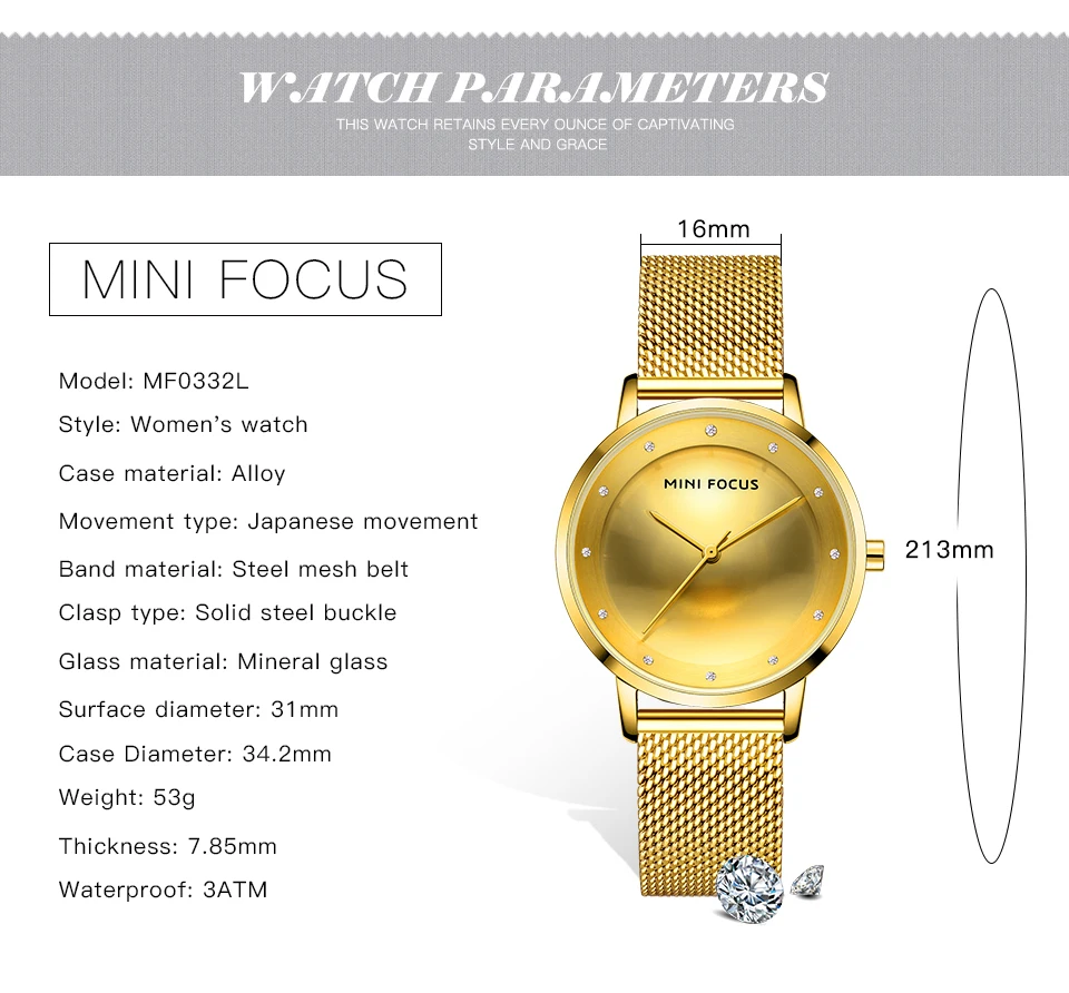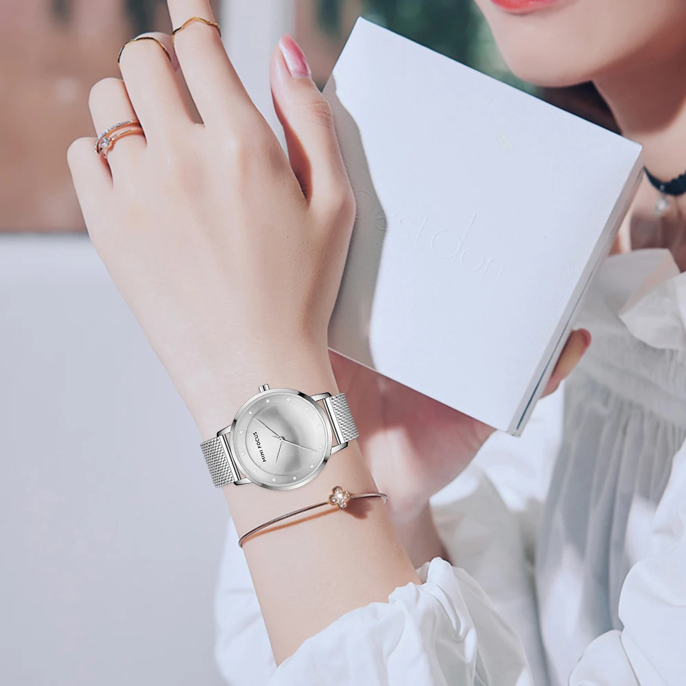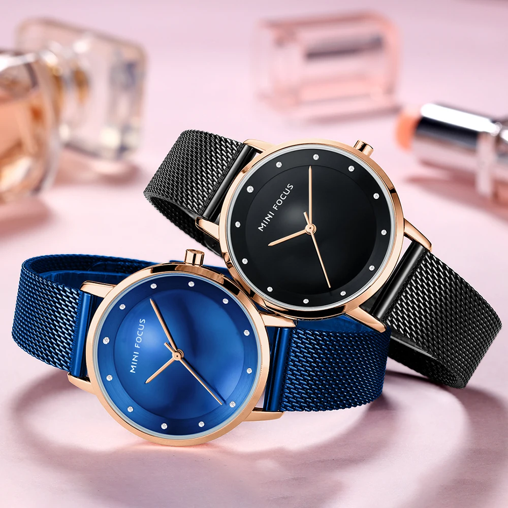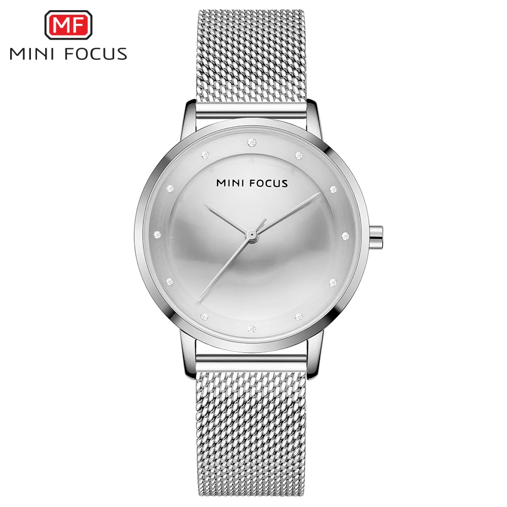 Мини фокус Роскошные модные женские креативные часы Стразы Дамские Кварцевые часы водонепроницаемые стальные сетчатые наручные часы для девушек Reloj