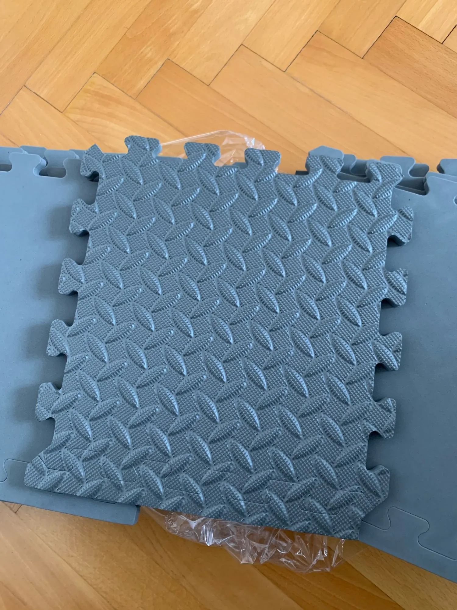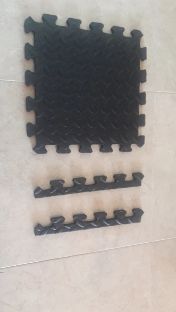 Идеальный пол для упражнений дома. Они изолируют от шума. Я купил его у другого продавца, и я получил один худшего качества и более светлый цвет, мне понравилось больше за 1,5 евро, чем эта стоимость. Я собираюсь купить больше, чтобы закончить заполнение подошвы в комнате