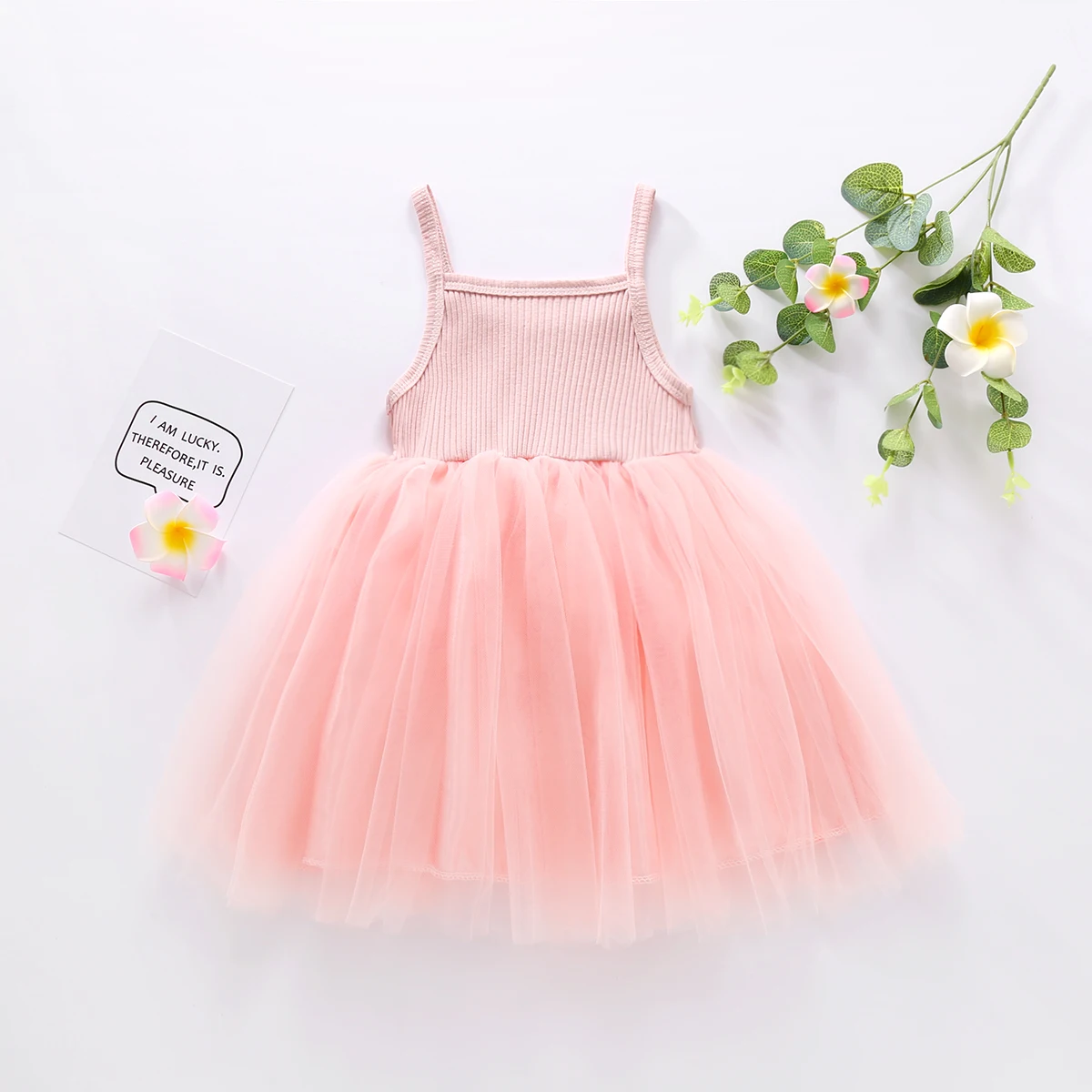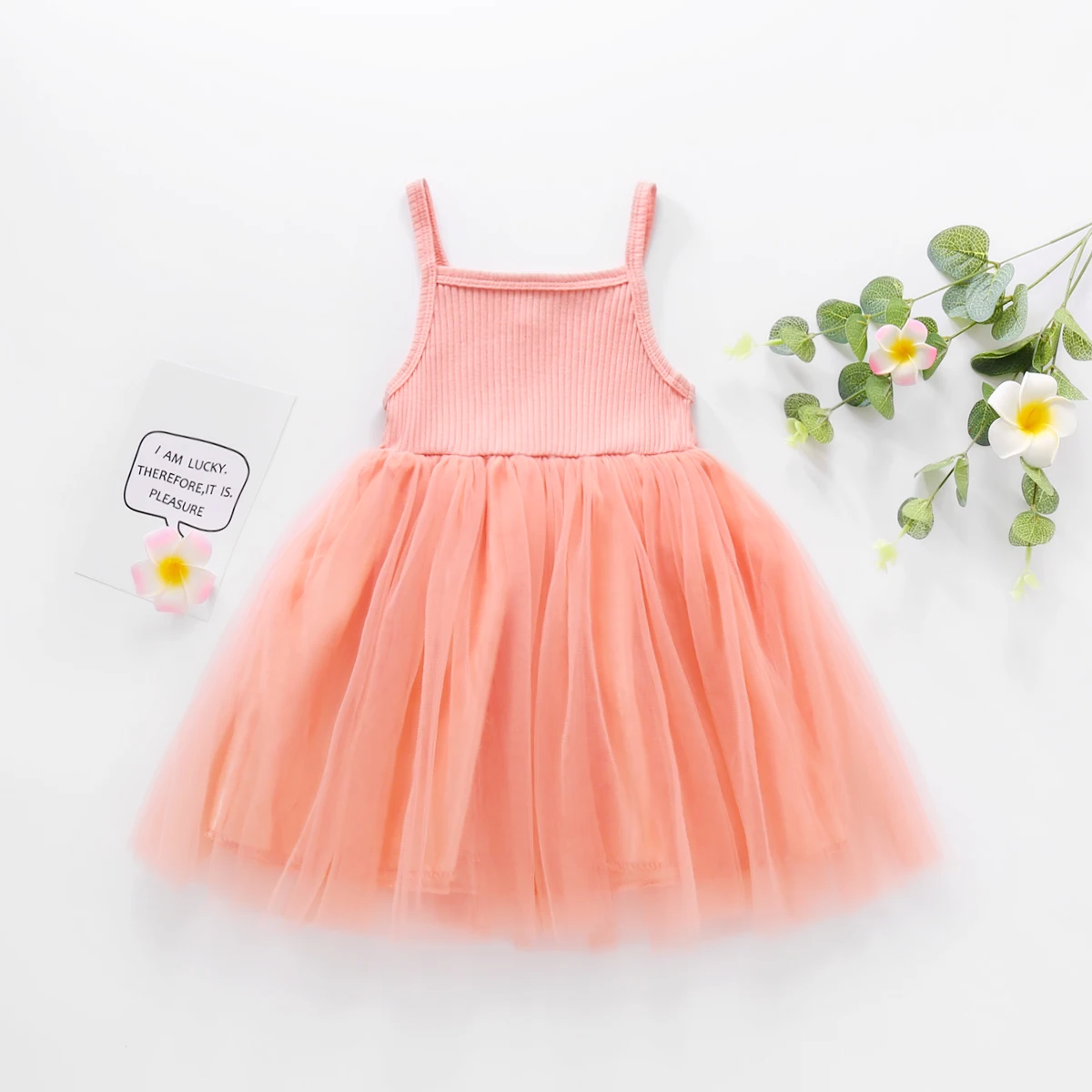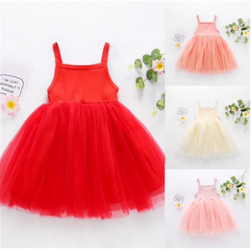 Платье принцессы для маленьких девочек, однотонное Сетчатое платье на тонких бретелях, платье для свадьбы, дня рождения, 2020
